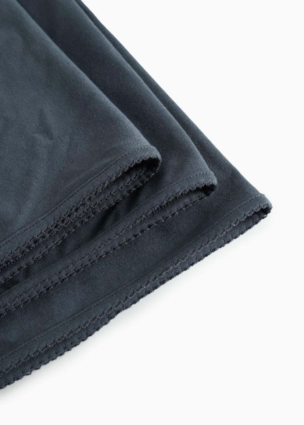 Baby blanket with rounded corners. The blanket measures 80 x 80 cm. The blanket is soft, keeps its shape and color and has elastane in it which makes it stretchy and comfortable.