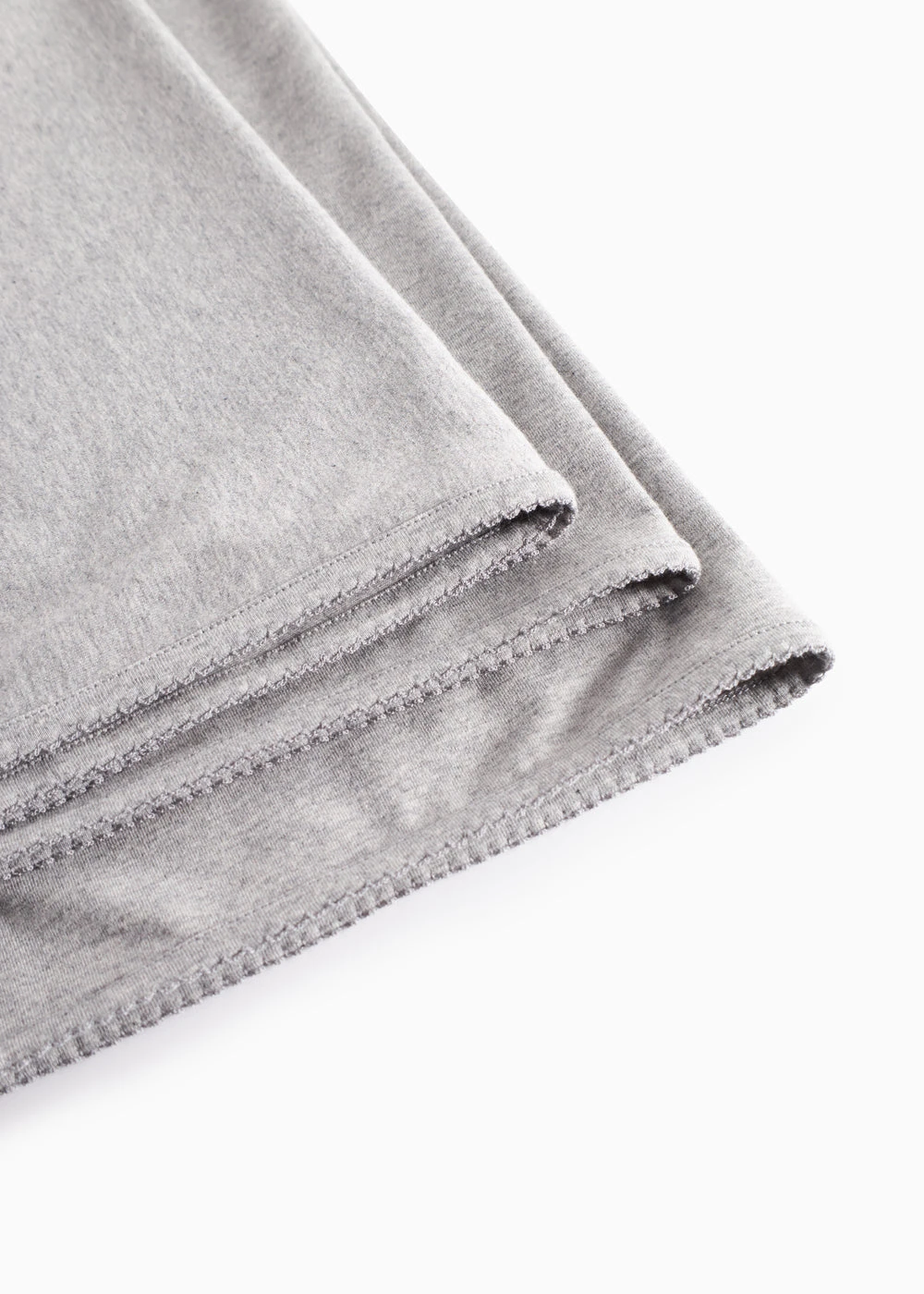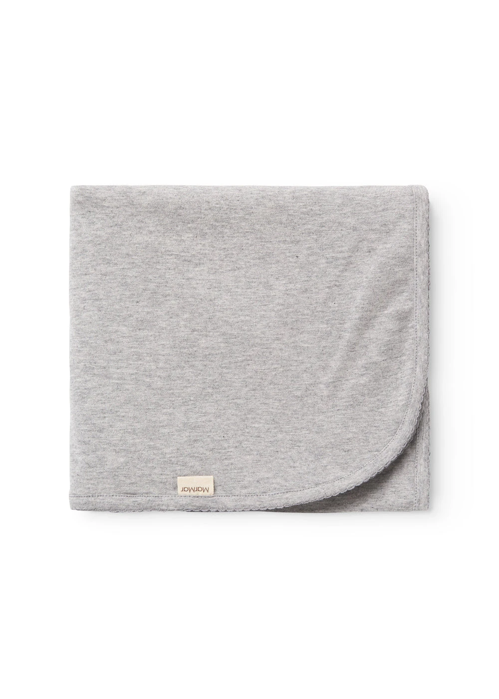 Baby blanket with rounded corners. The blanket measures 80 x 80 cm. The blanket is soft, keeps its shape and color and has elastane in it which makes it stretchy and comfortable.