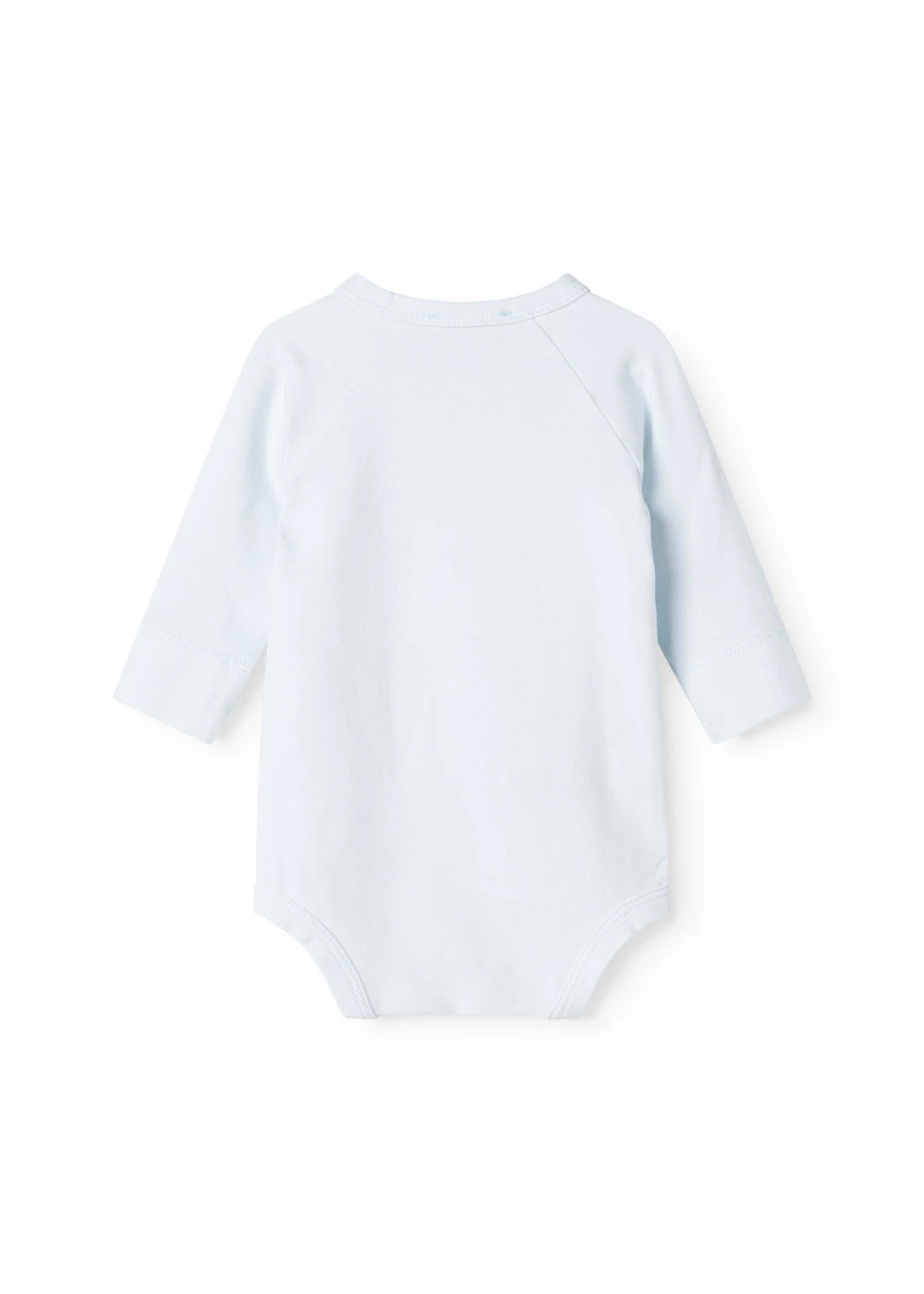 Long-sleeved bodystocking for newborns with wrap-around closure.