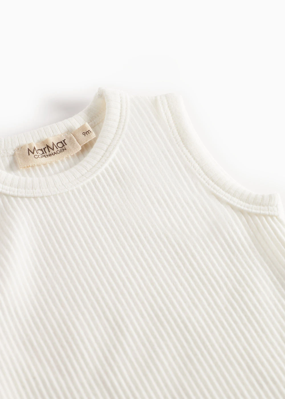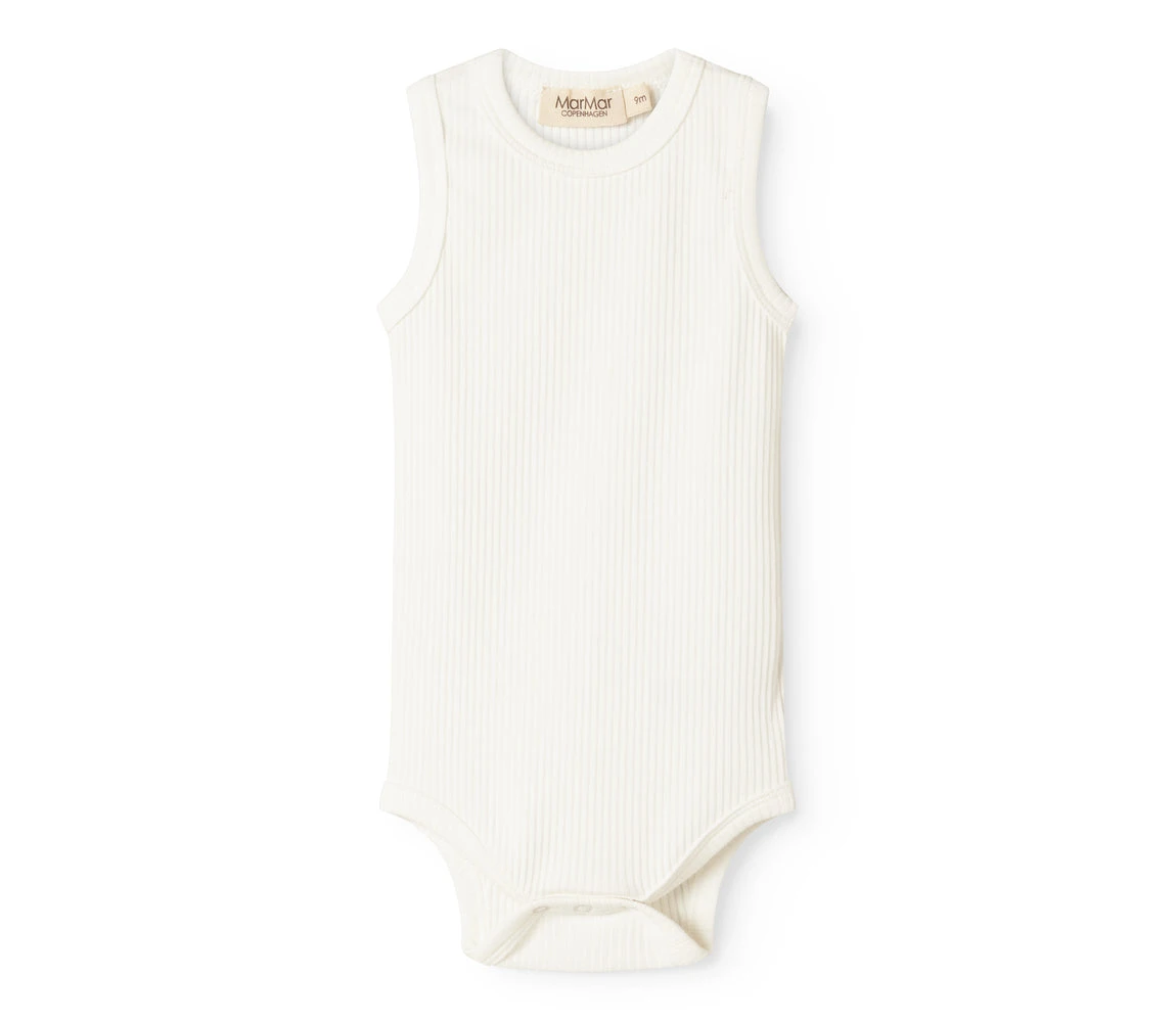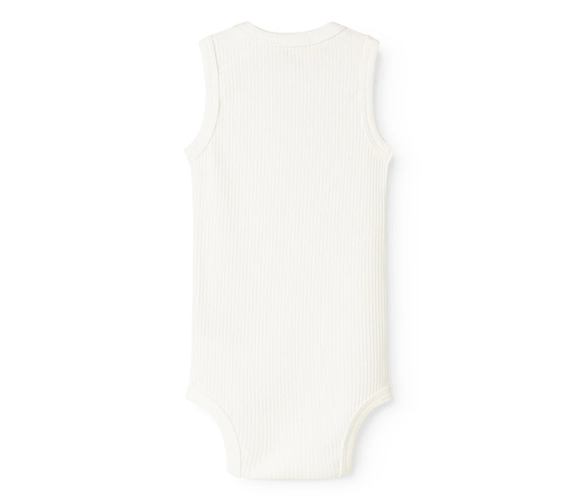 Sleeveless bodystocking that closes with snaps between the legs for easy diaper changes.