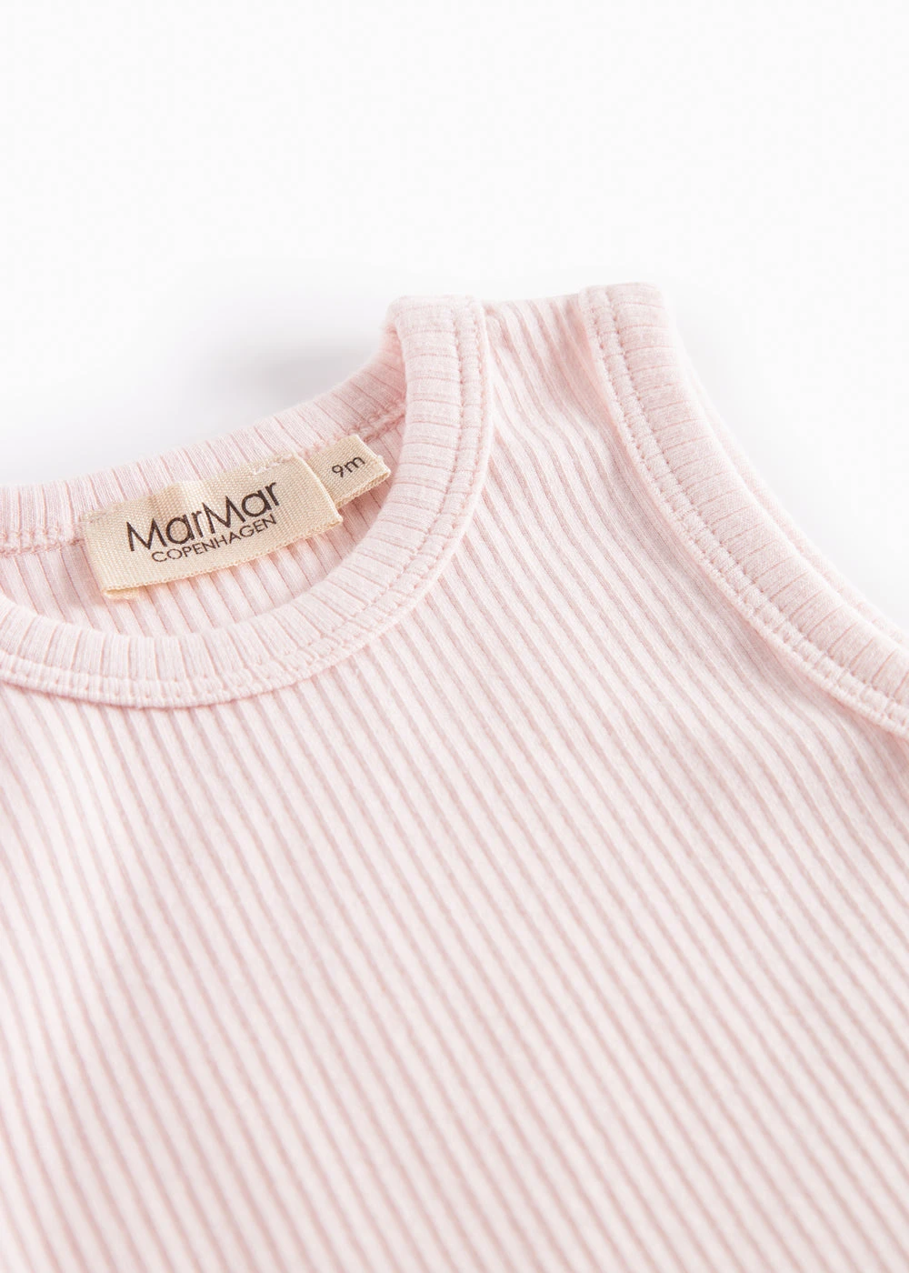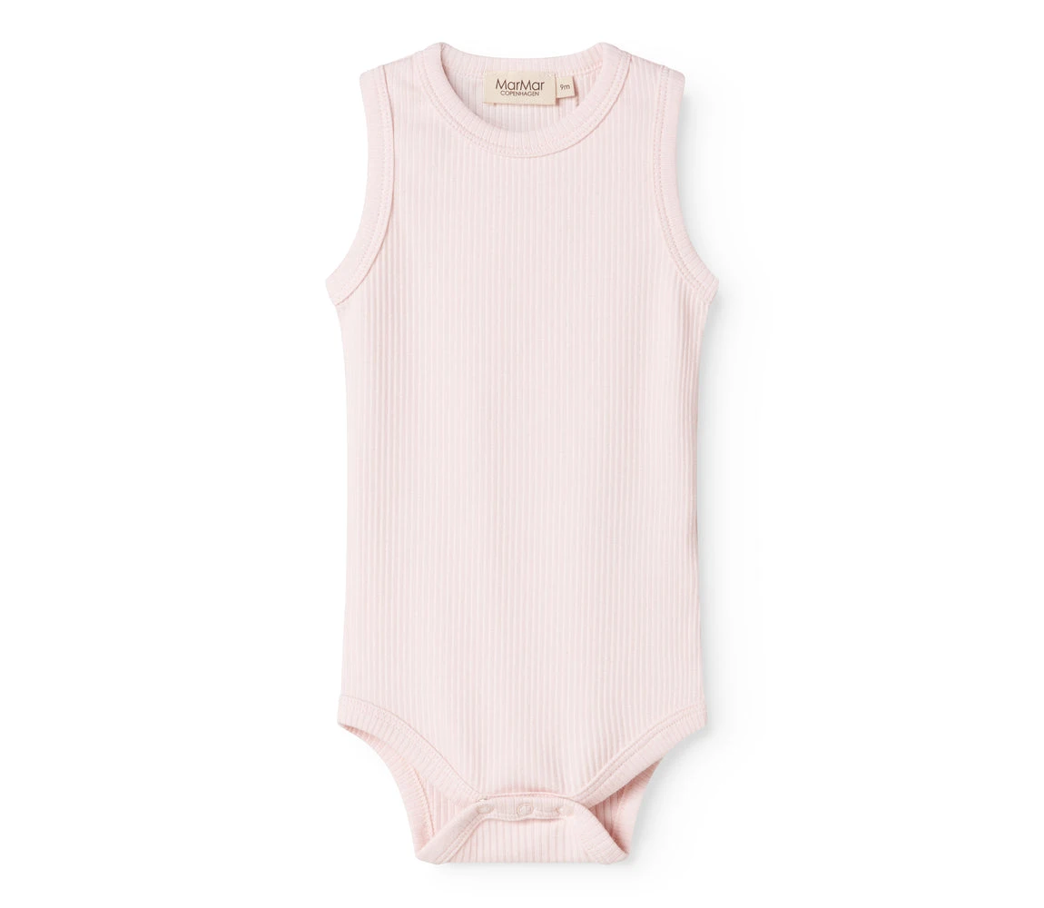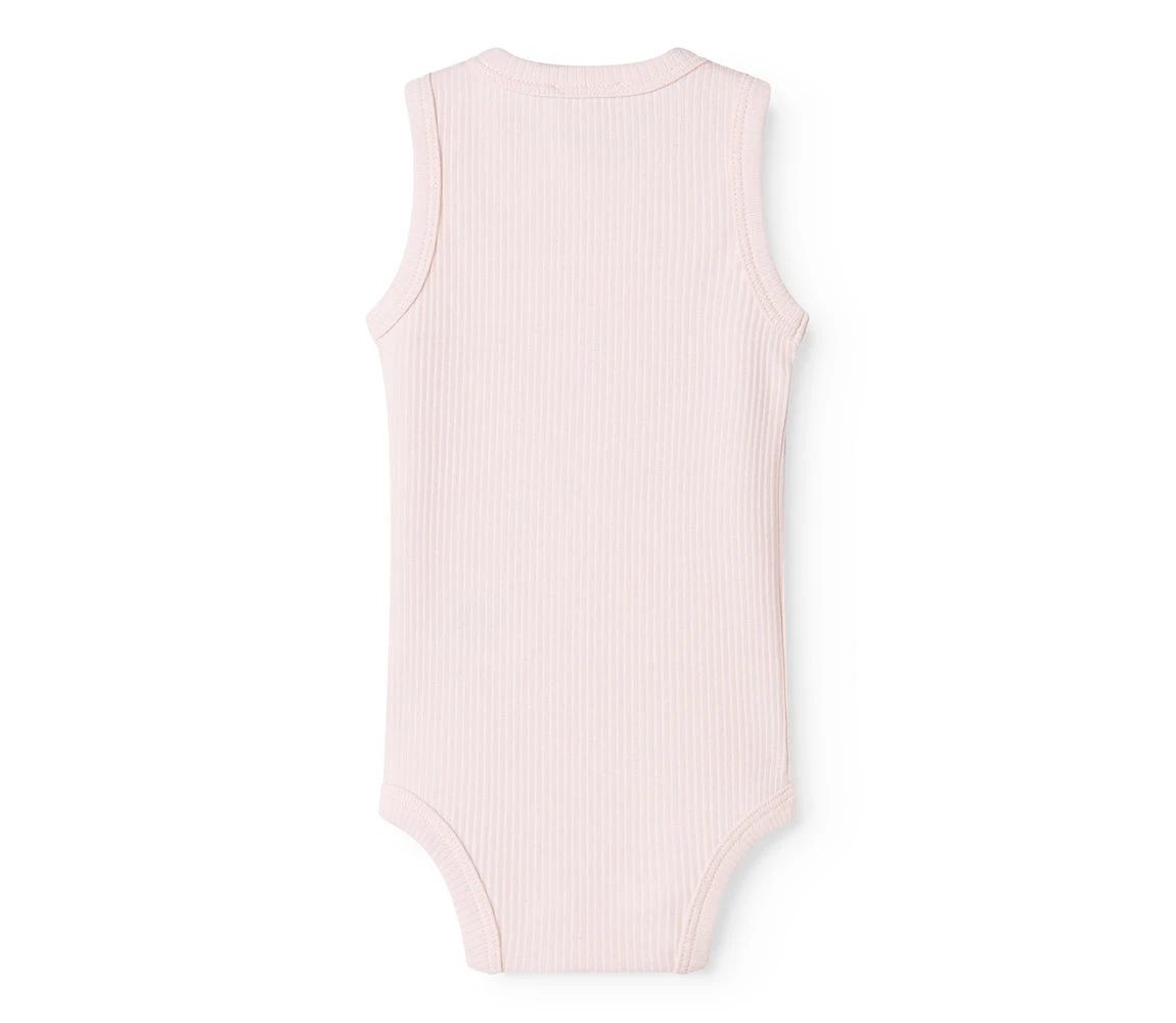 Sleeveless bodystocking that closes with snaps between the legs for easy diaper changes.