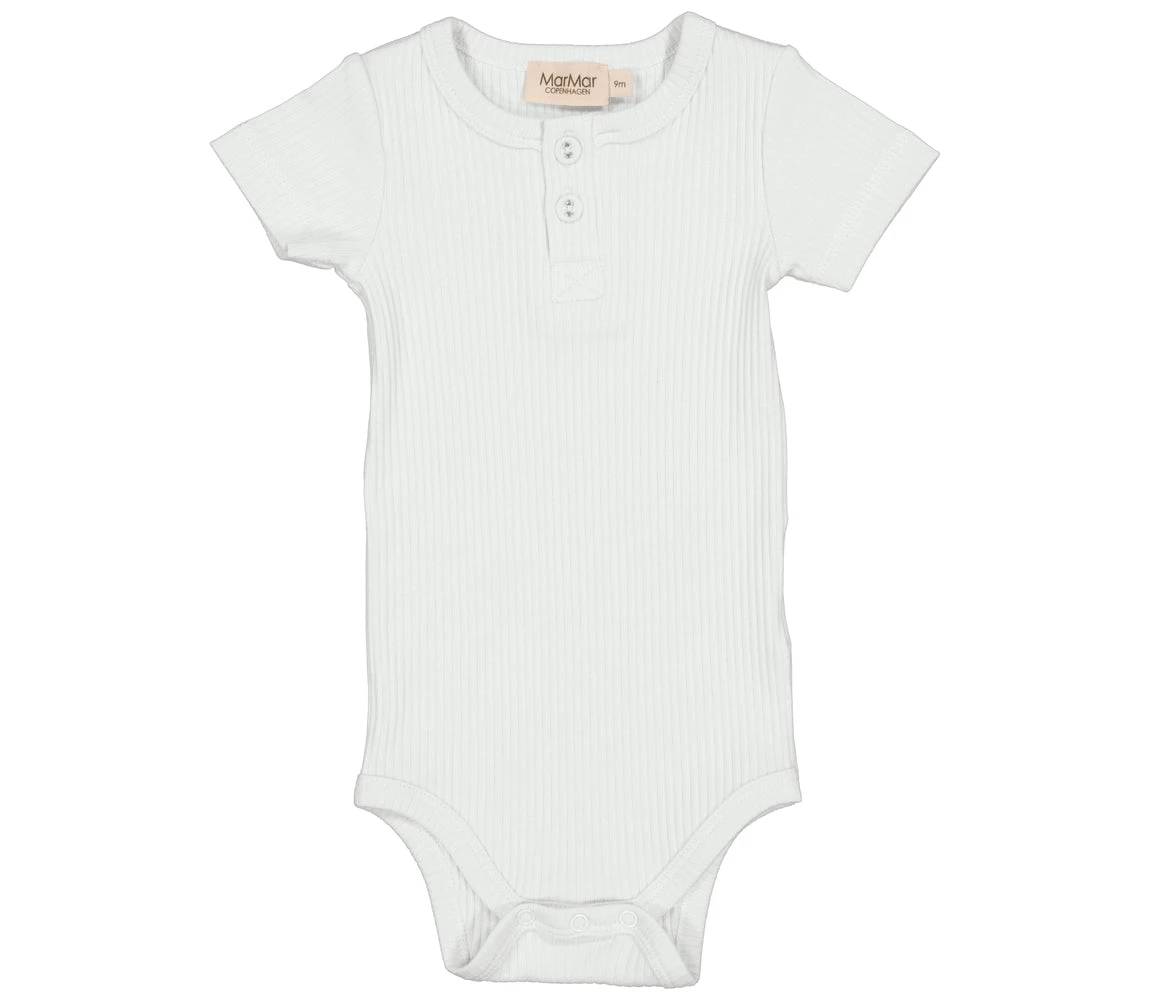 Short-sleeved baby modal bodystocking with placket button closure, which is closed with snaps between the legs for easy diaper changes. The bodystocking is ribbed, soft, holds shape and color and has elastane in it, which makes it stretchy and comfortable to wear.