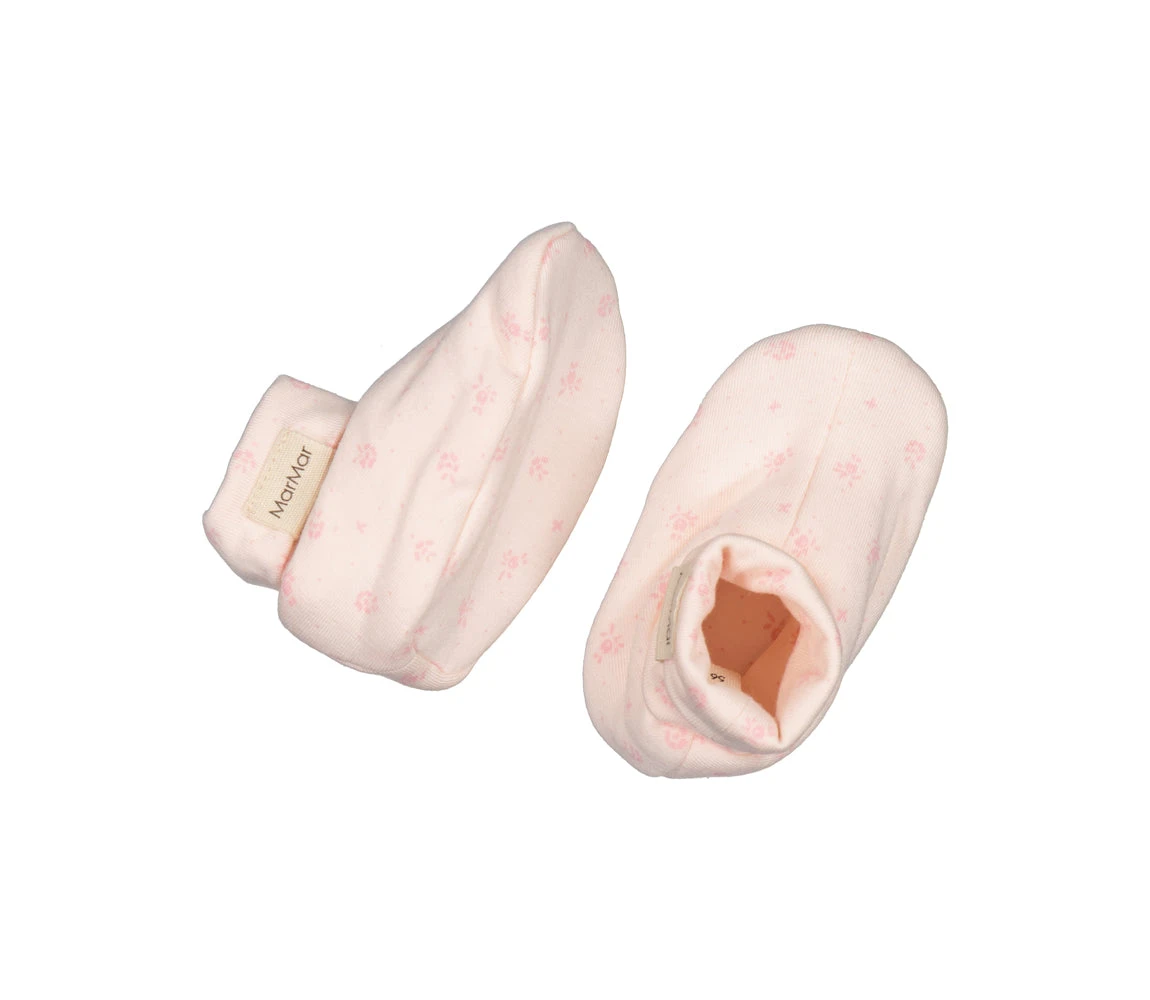 Small soft and warm booties for newborns with a cute floral print. The booties are soft, stretchy and comfortable to wear.