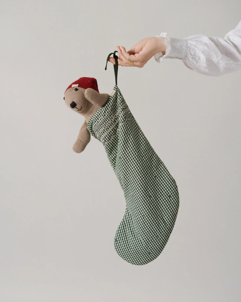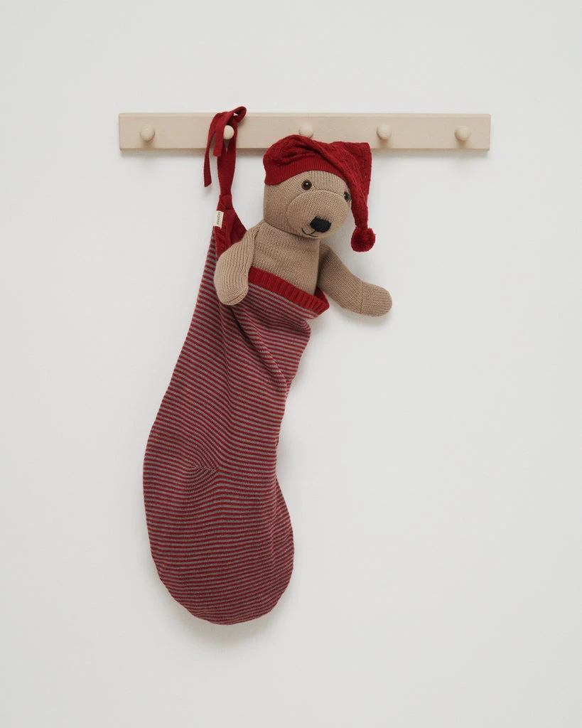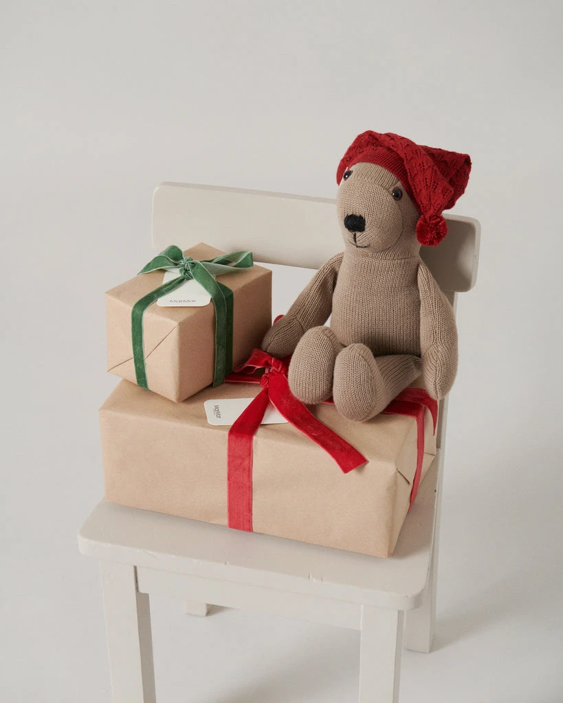 Santa hat for teddy bear in knit with lace details. The Santa hat fits perfectly with our soft teddy bear Teddy. Please note that the teddy bear must be purchased separately. Find it here.