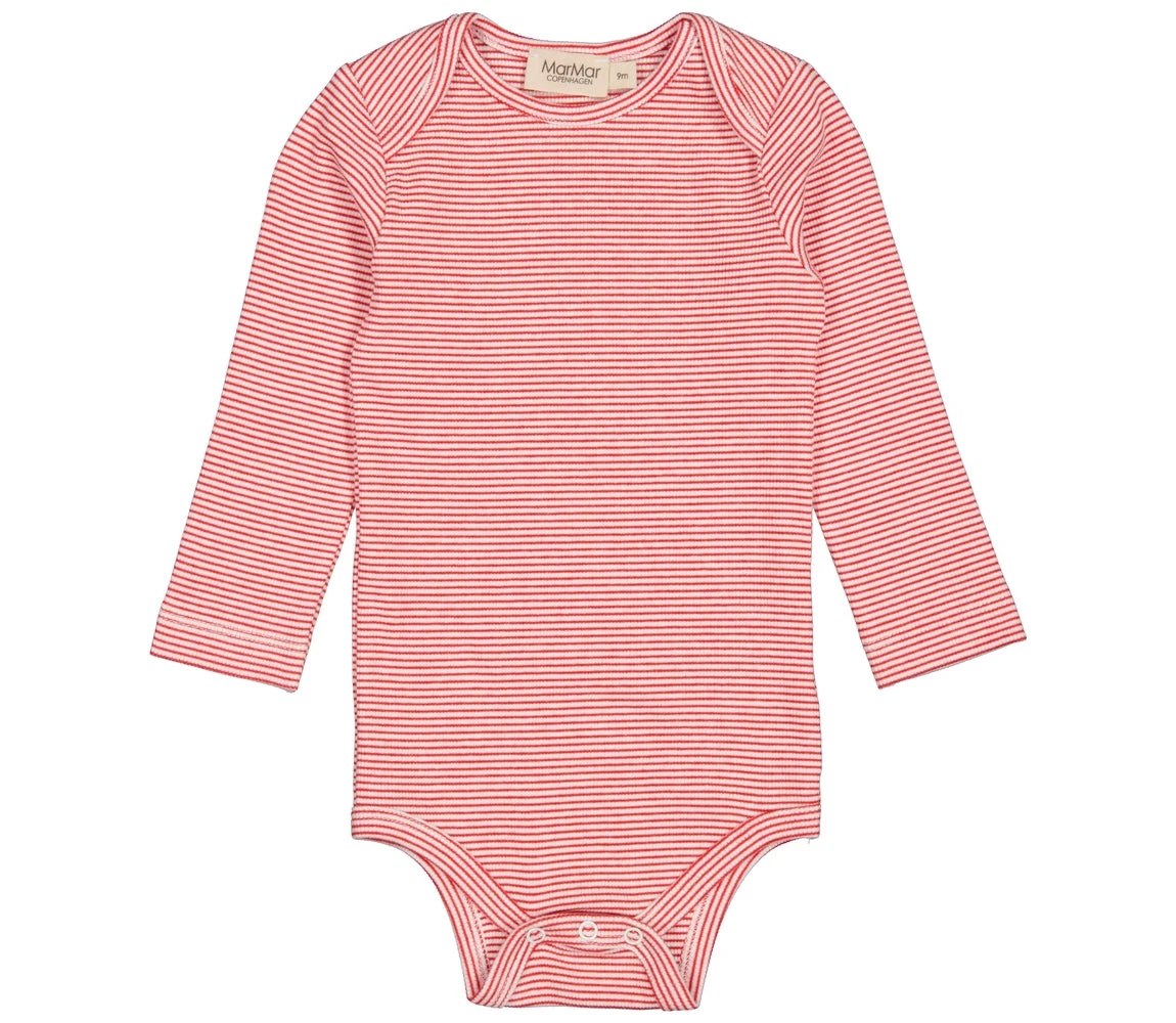 Long-sleeved bodystocking with fine stripes, smart neck opening without buttons that can be easily pulled down the body. The bodystocking closes with press studs between the legs for easy diaper changes. The bodystocking is both soft, stretchy and comfortable to wear
