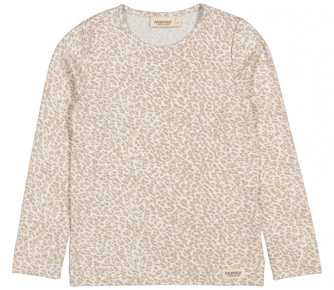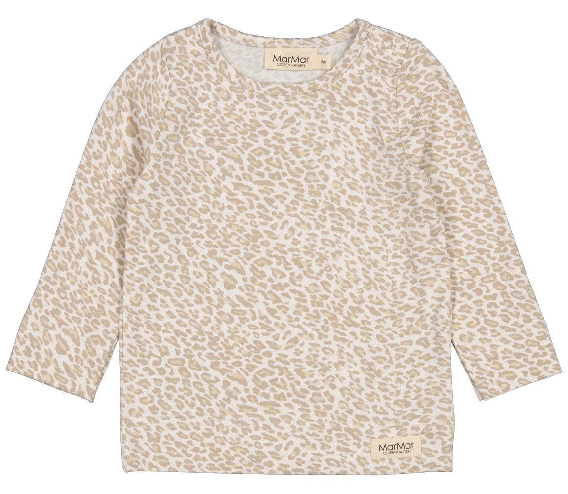 Long-sleeved leopard t-shirt. In sizes 62-74 there are press studs on the left shoulder. The t-shirt is very soft, stretchy and comfortable to wear.