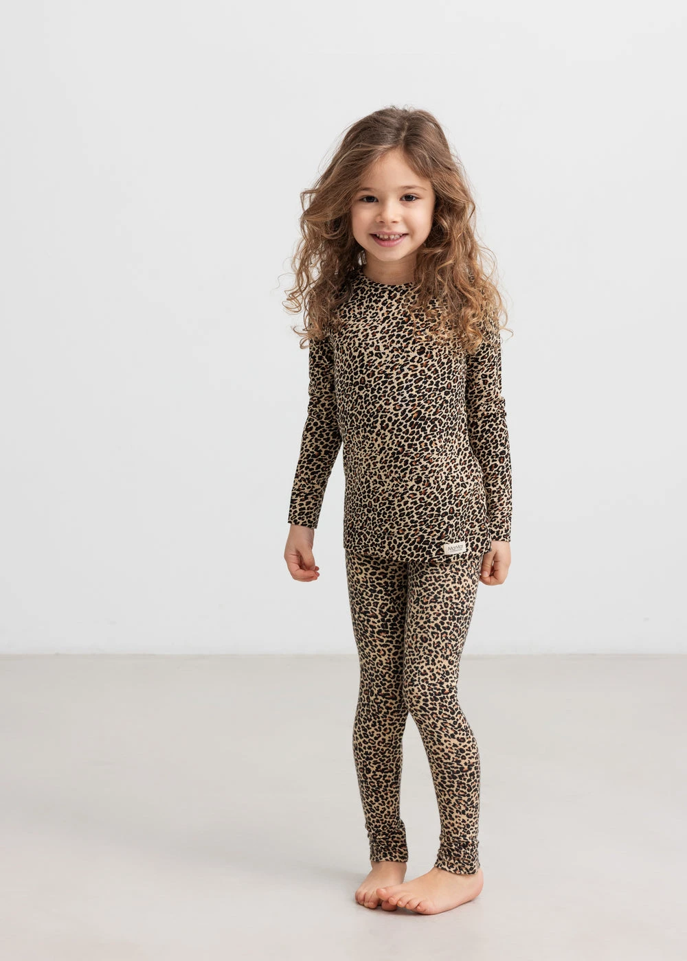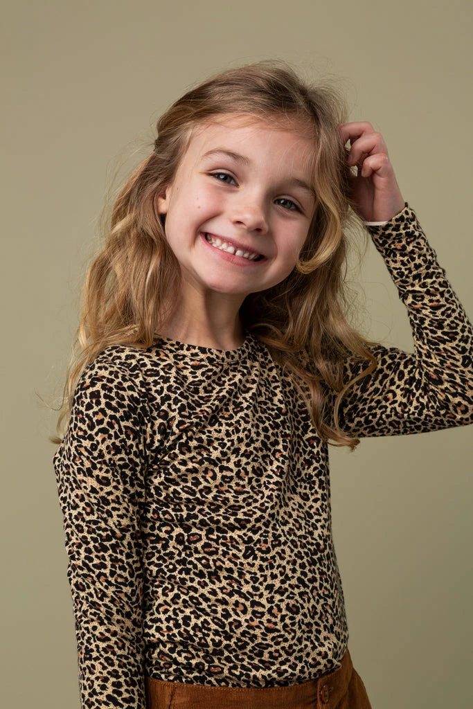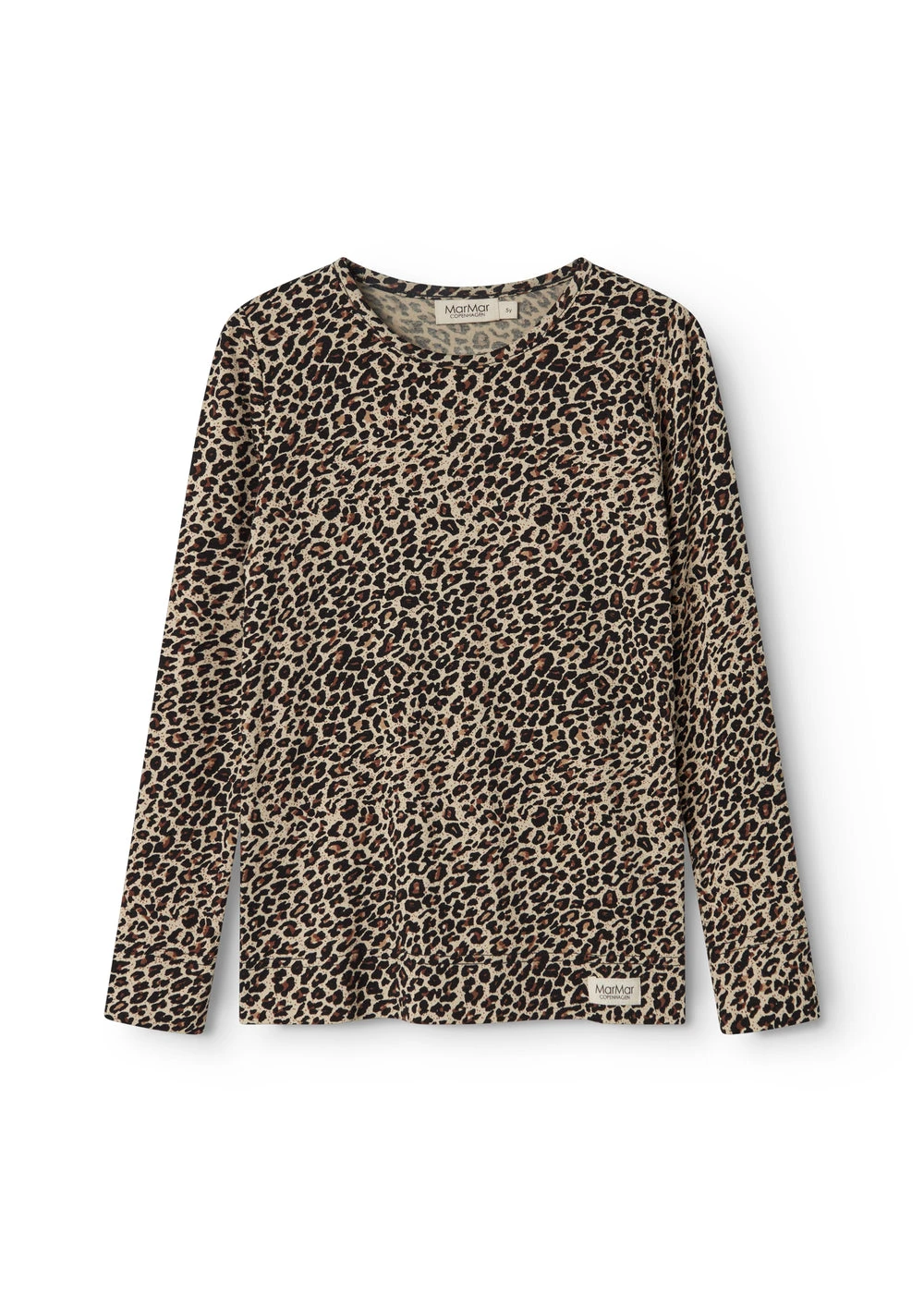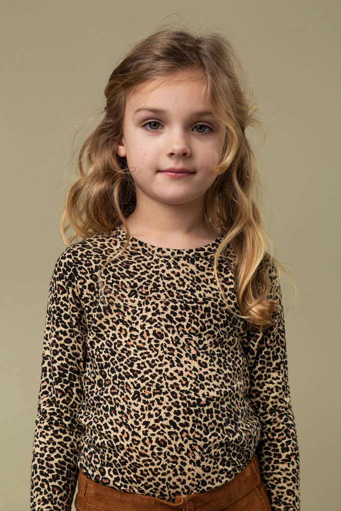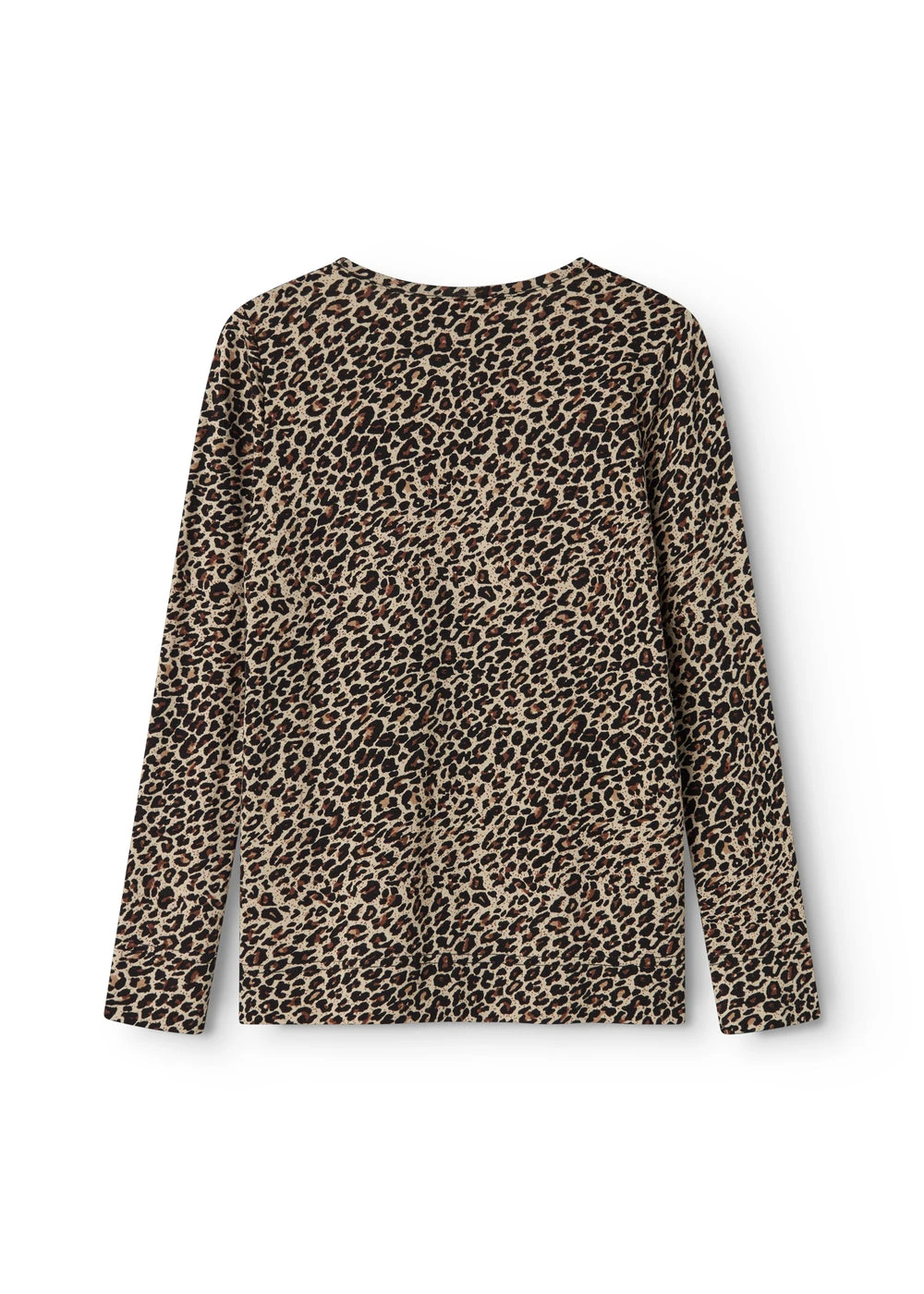 Long-sleeved T-shirt in leopard print. In sizes 62-74 there are snap buttons on the left shoulder
