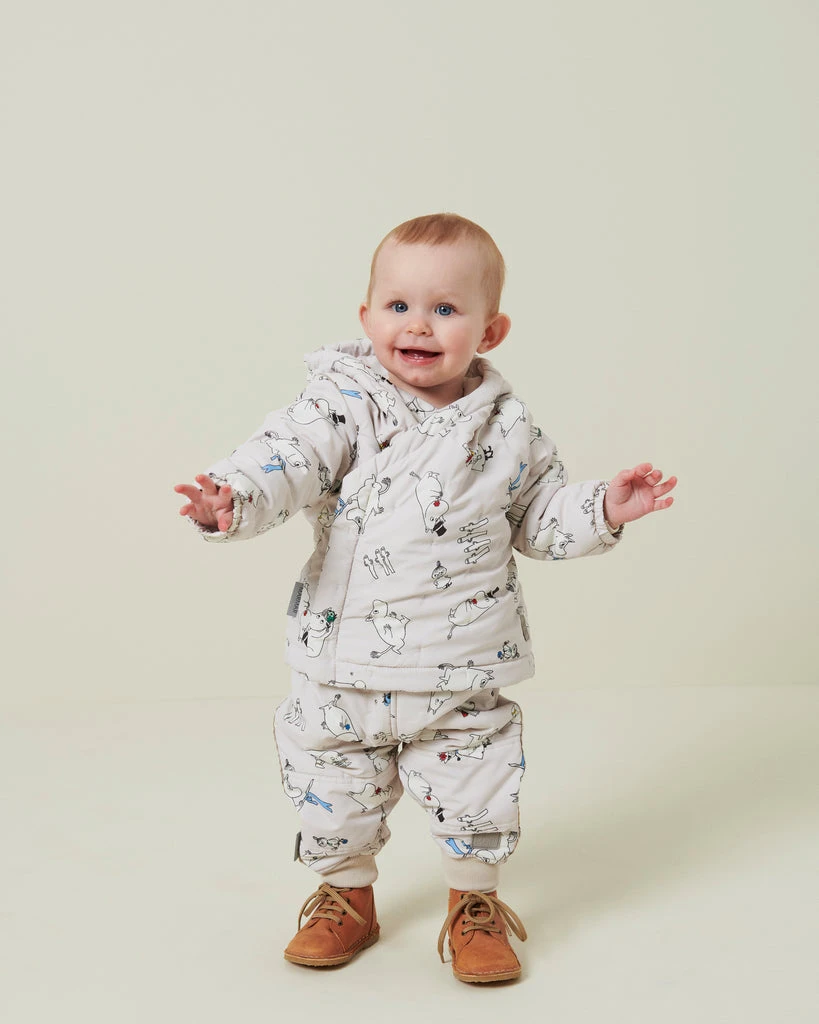 Thermal trousers with Moomin print with a slim fit and elastic waist. The trousers are reinforced at the bottom and knees up to size 128. The thermal trousers work perfectly as warm and practical transitional clothing.