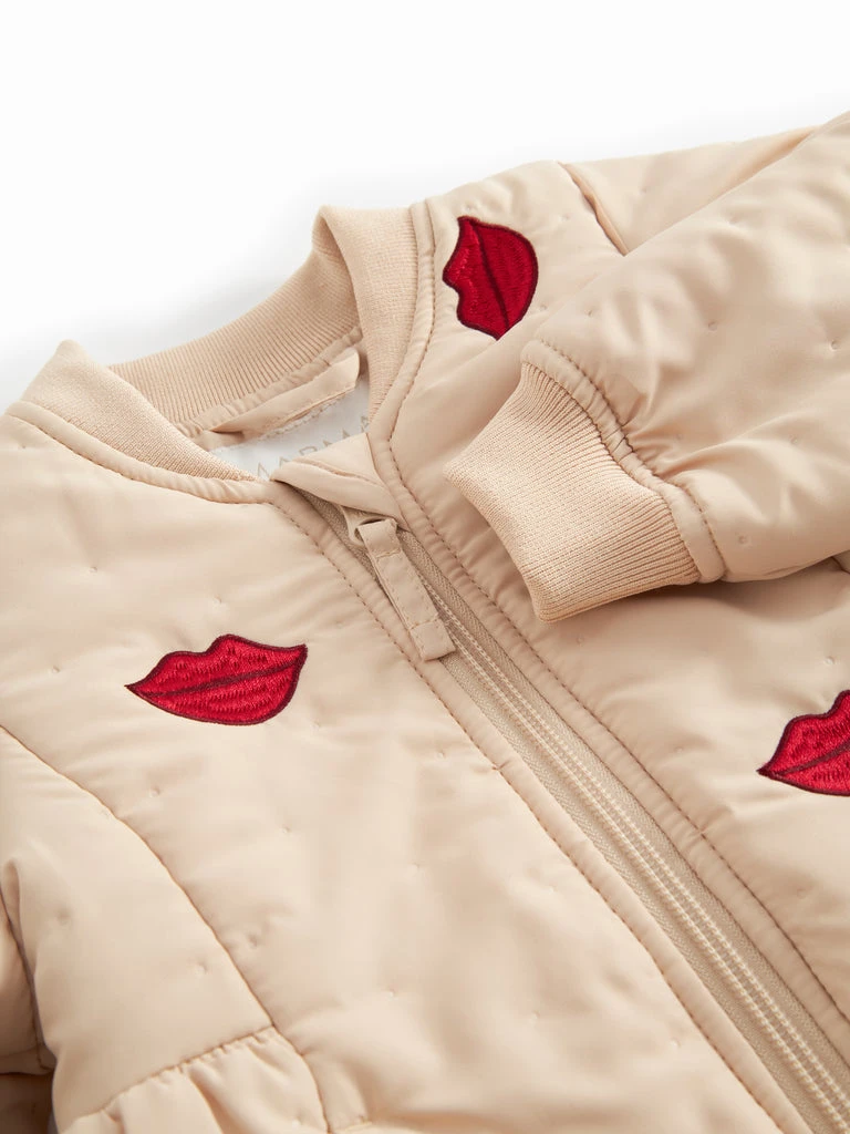 Thermal jacket with peplum for a more feminine look and fine embroidered details. The jacket has two hidden pockets at the front, a fitted fit and closes with a zipper at the front. The thermal jacket is perfect for spring. Combine with our Odin thermal pants here