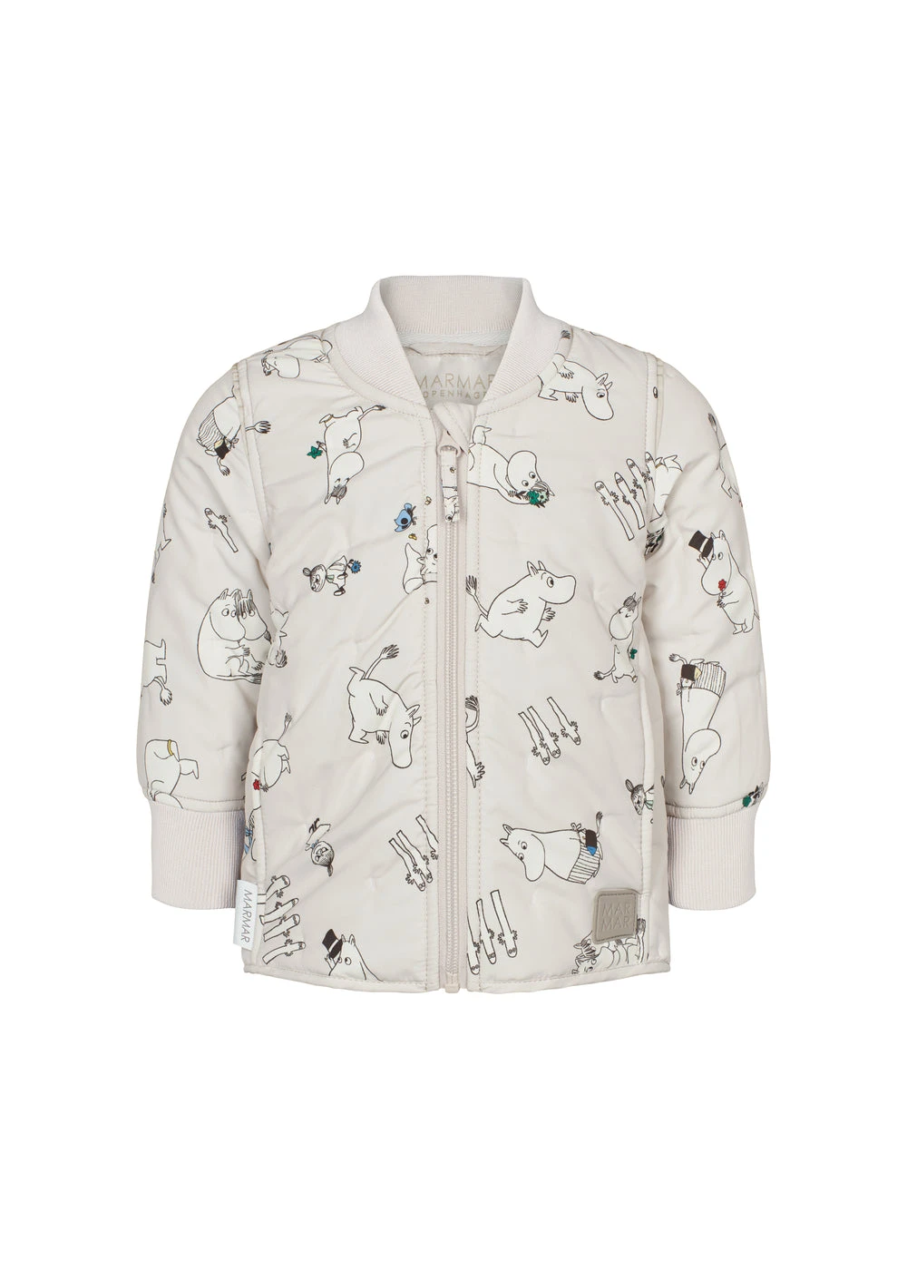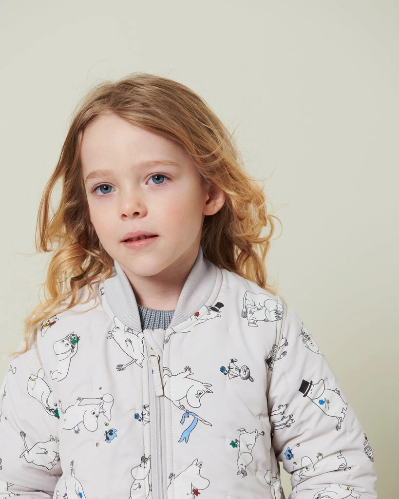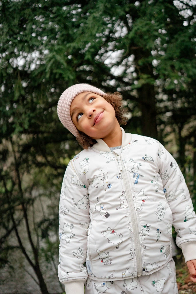 Thermal jacket with Moomin print, slim fit and two pockets on the side. The jacket can be folded up at the back using small Velcro details if you don’t want it to be longer. The jacket closes with a zipper at the front and is perfect for spring. Combine the thermal jacket with our Odin thermal pants here
