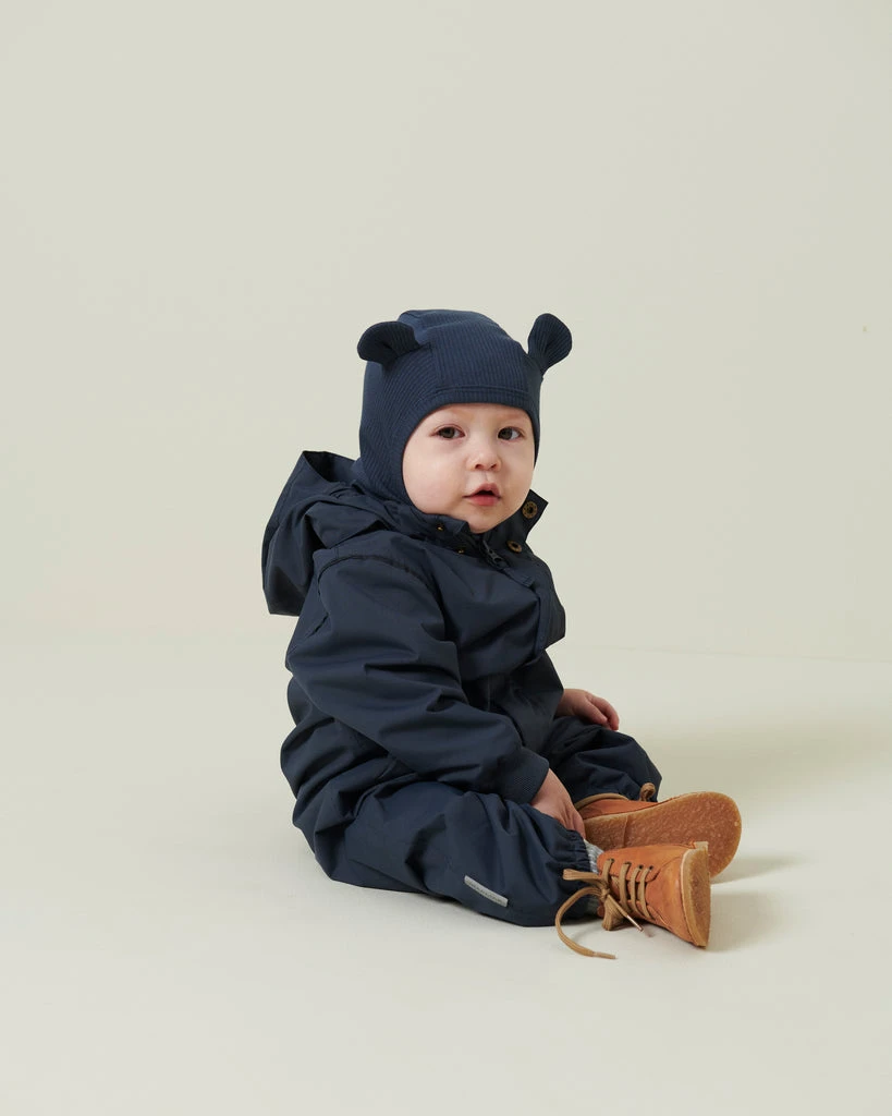 Spring suit for the little ones in a light, thin and soft material. The spring suit has two zippered pockets at the front, a good and comfortable fit and closes with a zipper and press studs at the front. The spring suit has a removable hood, adjustable foot straps and a name tag on the inside.