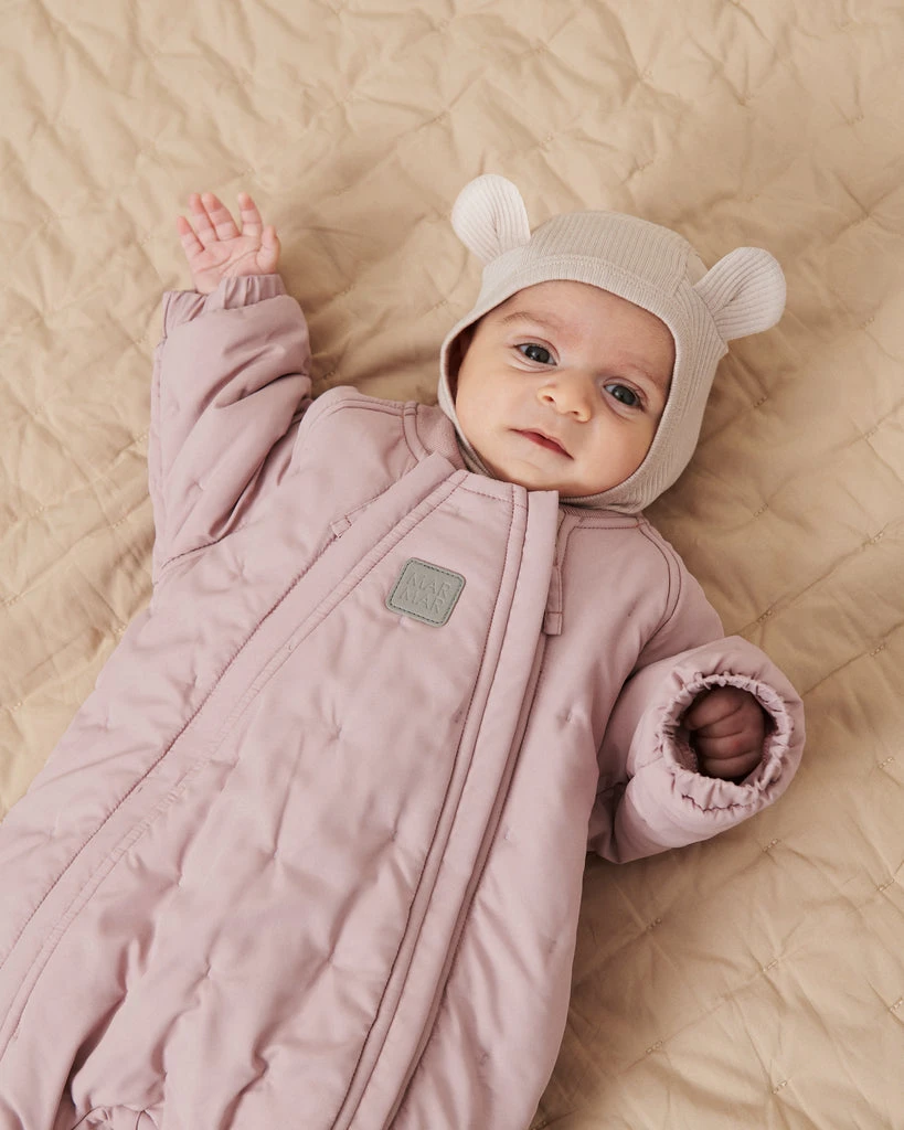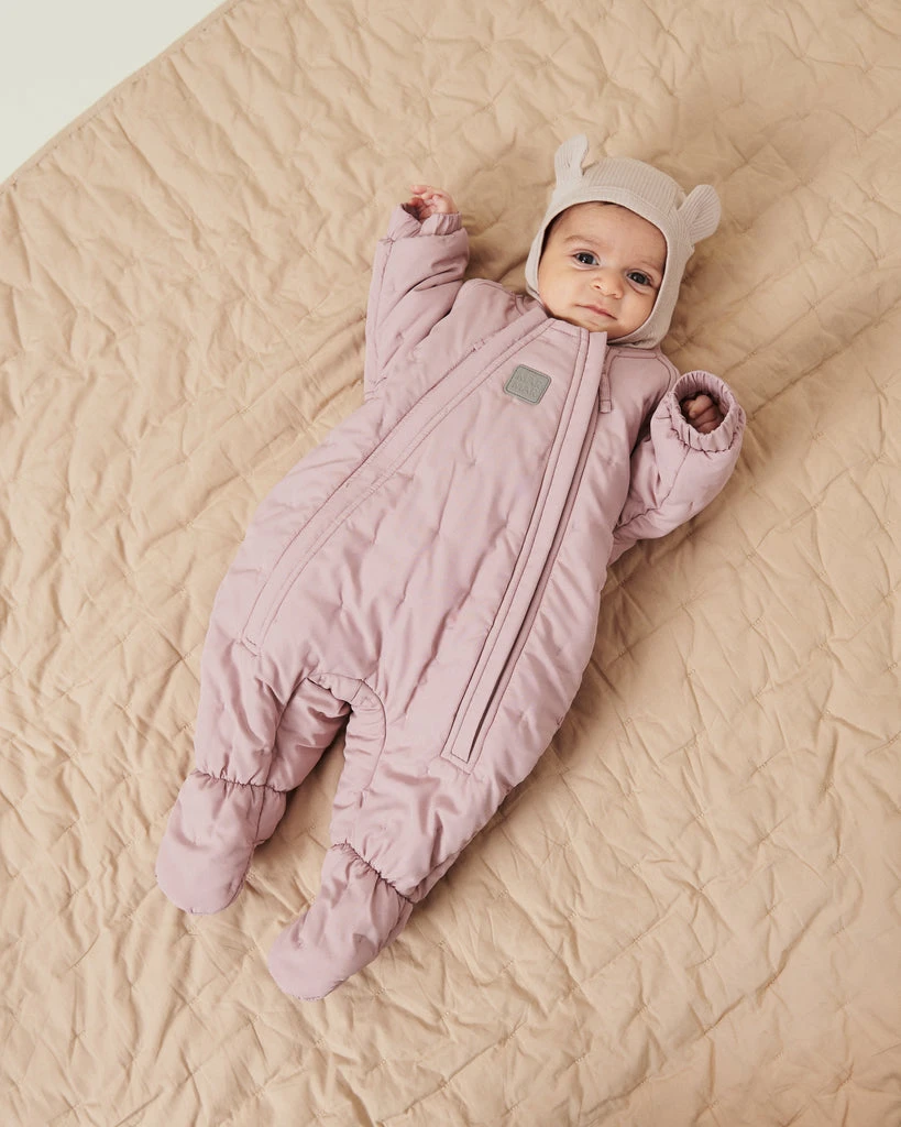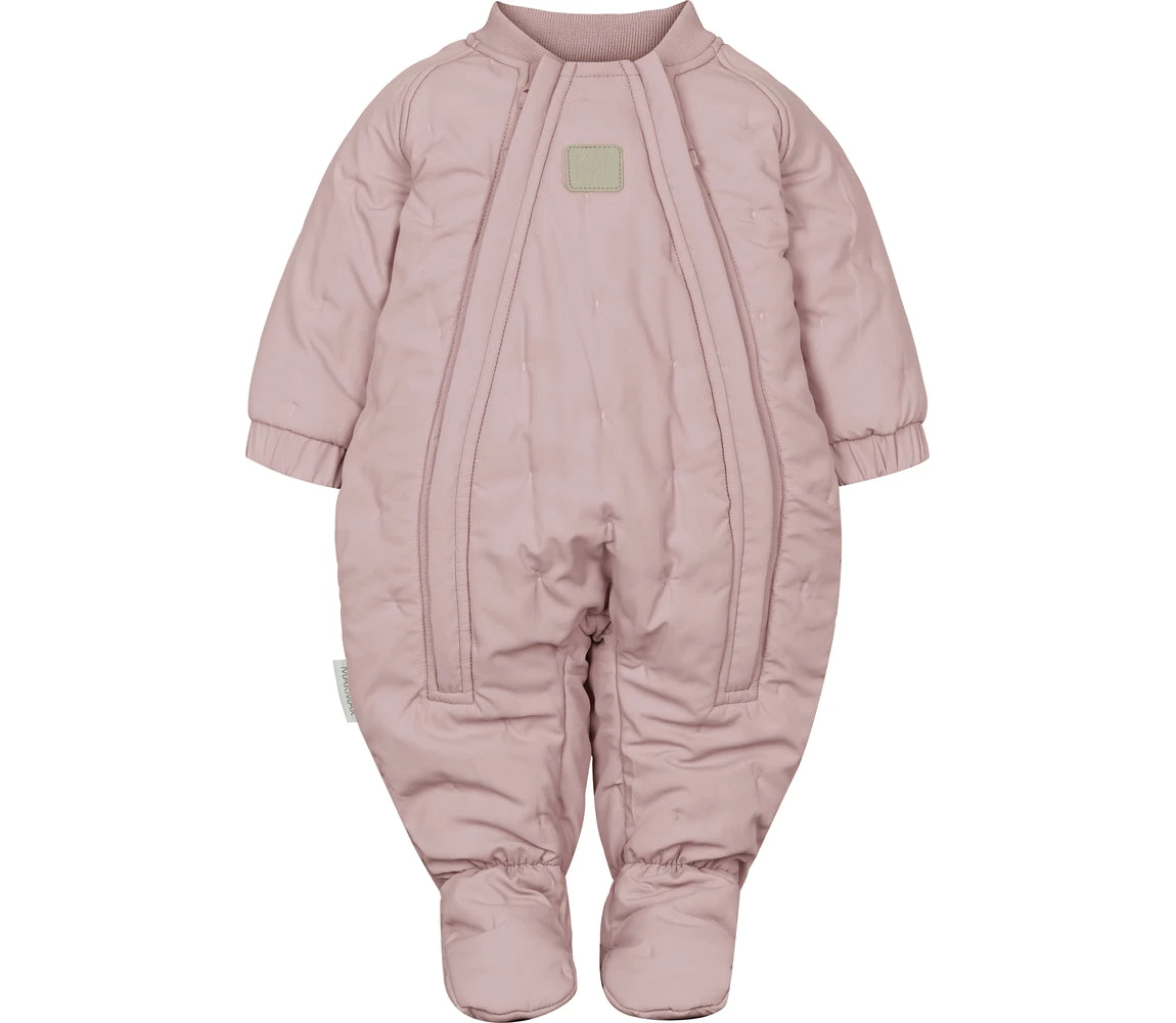 Thermal suit for baby with firm feet, good fit and double zipper closure so the thermal suit can be easily put on and taken off. The thermal suit works perfectly as warm and practical transitional clothing