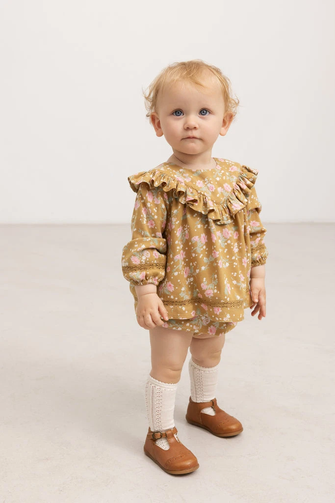 Small bloomers in soft viscose with ruffle details and plenty of room for the diaper.