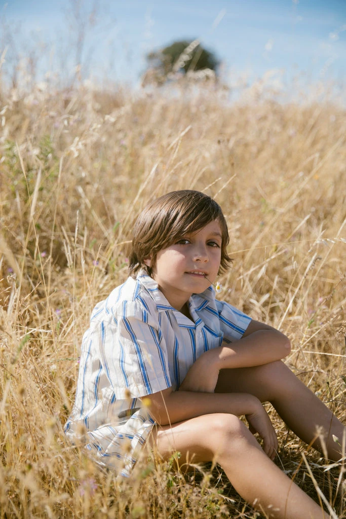 Comfortable shorts with fine stripes, a loose fit, a pocket on the back and an elastic waistband with a tie.
