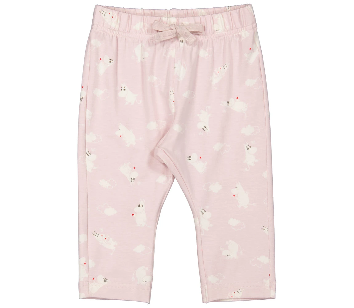 Comfortable pants with a cute Moomin print with elastic and a decorative ribbon at the waist. The pants are soft, stretchy and comfortable to wear.