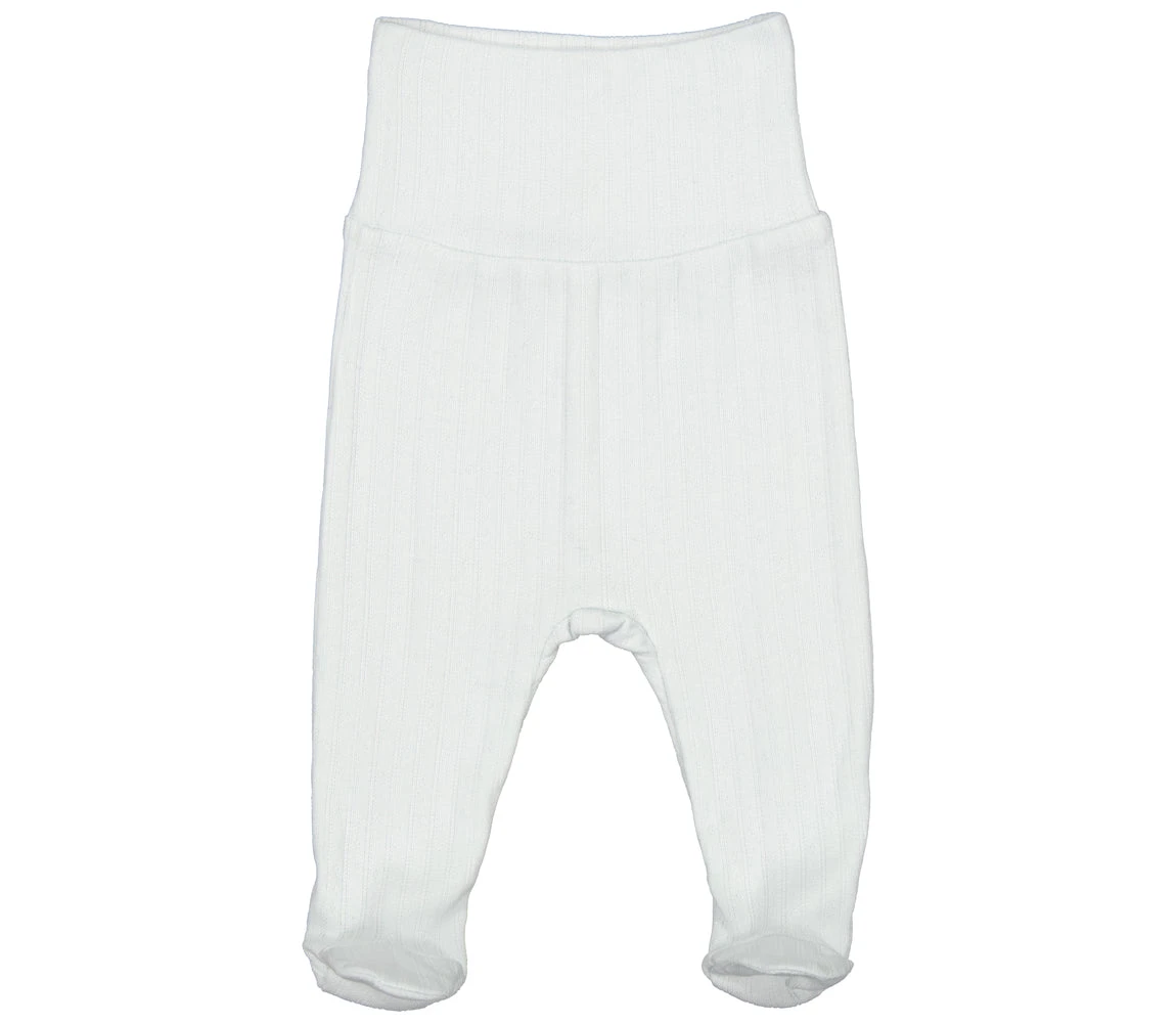 Comfortable pointelle pants with feet for newborns. The pants are soft, stretchy and comfortable to wear.