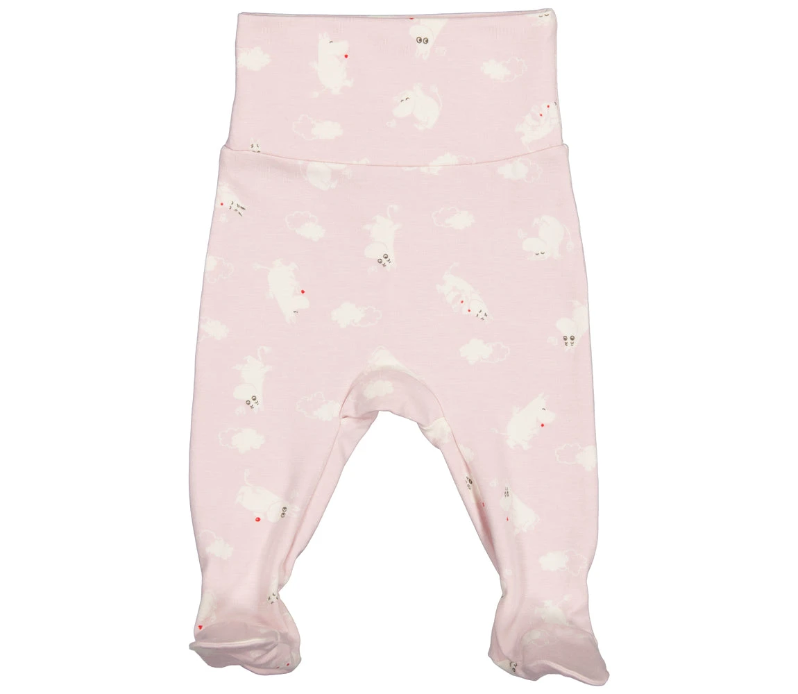 Comfortable pants with feet for newborns with a cute Moomin print. The pants are soft, stretchy and comfortable to wear.