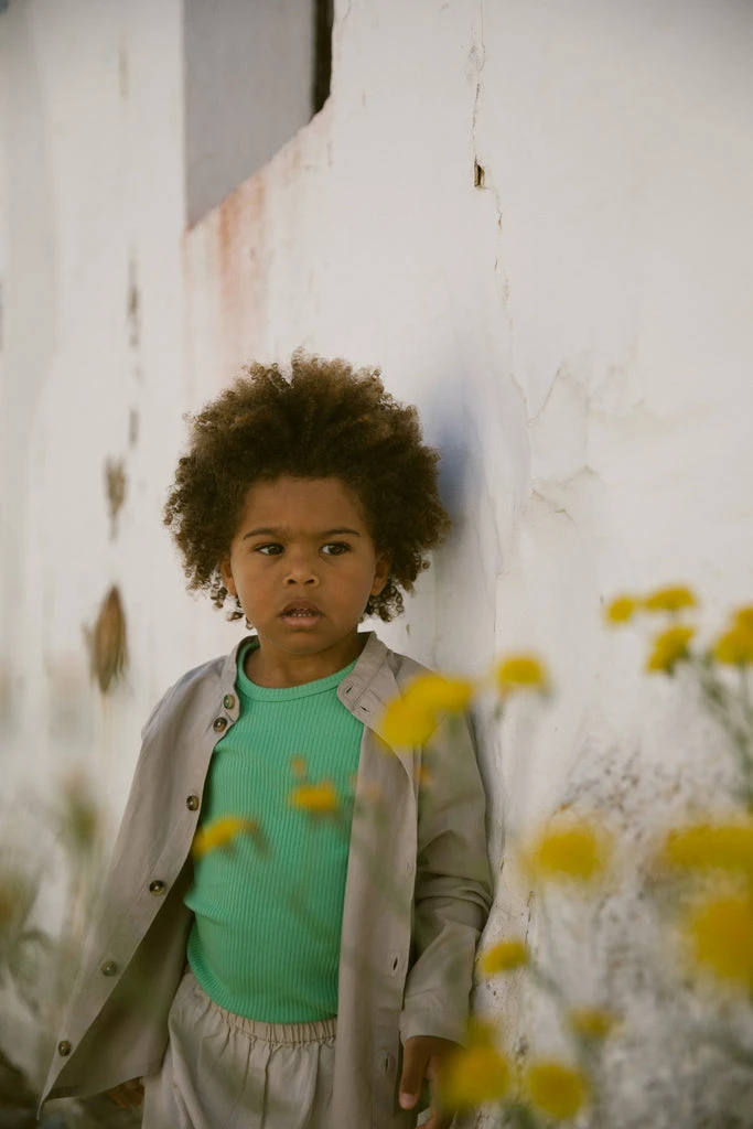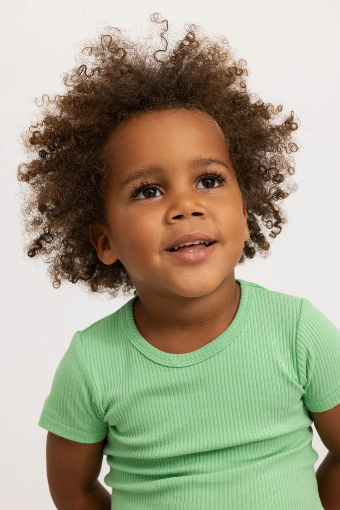 Simple short-sleeved modal t-shirt. The t-shirt is ribbed, soft, holds its shape and color and has elastane in it, which makes it stretchy and comfortable to wear.