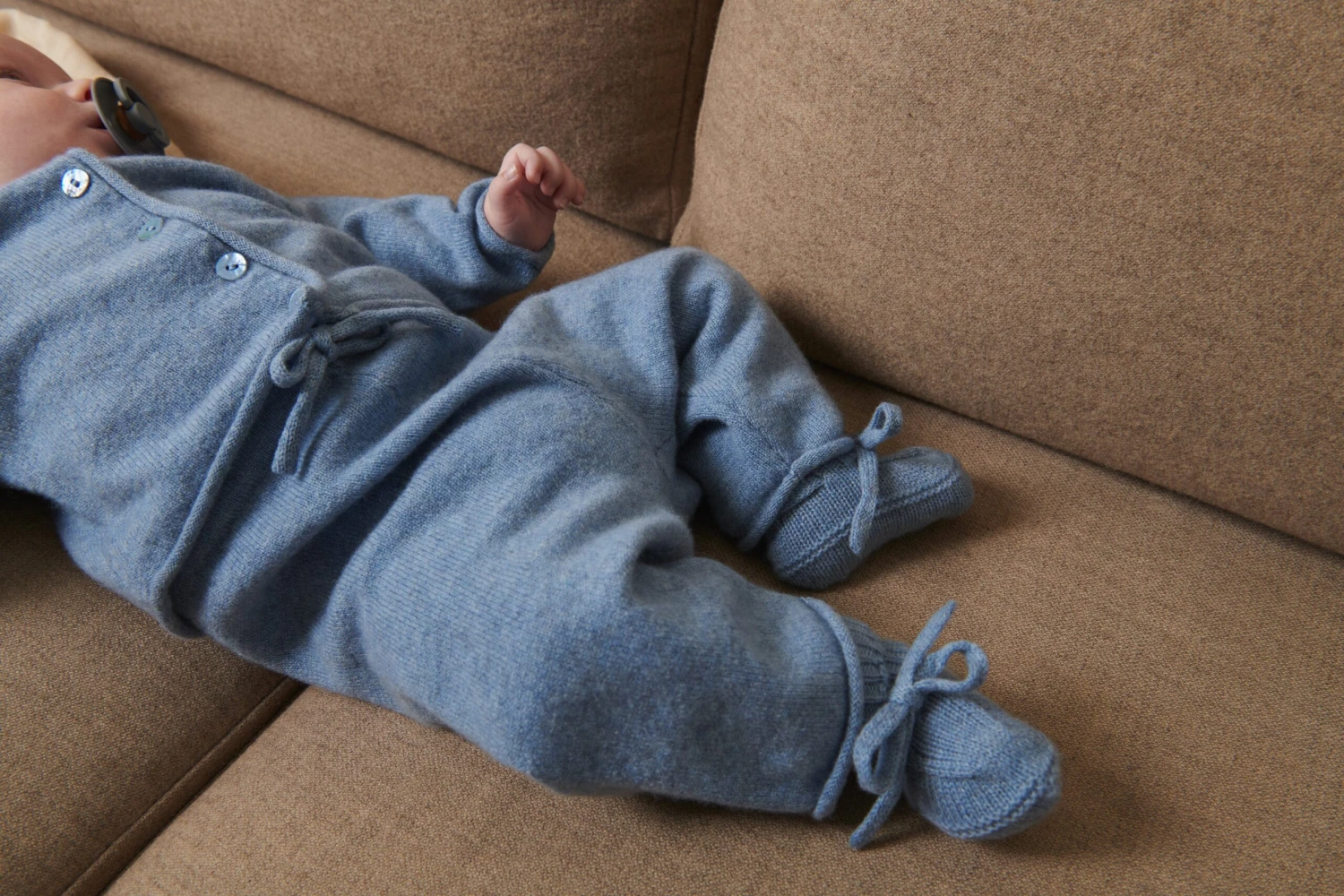 Ultra soft cashmere pants for baby with elastic and tie waist