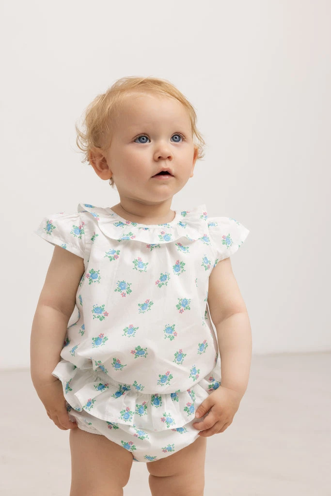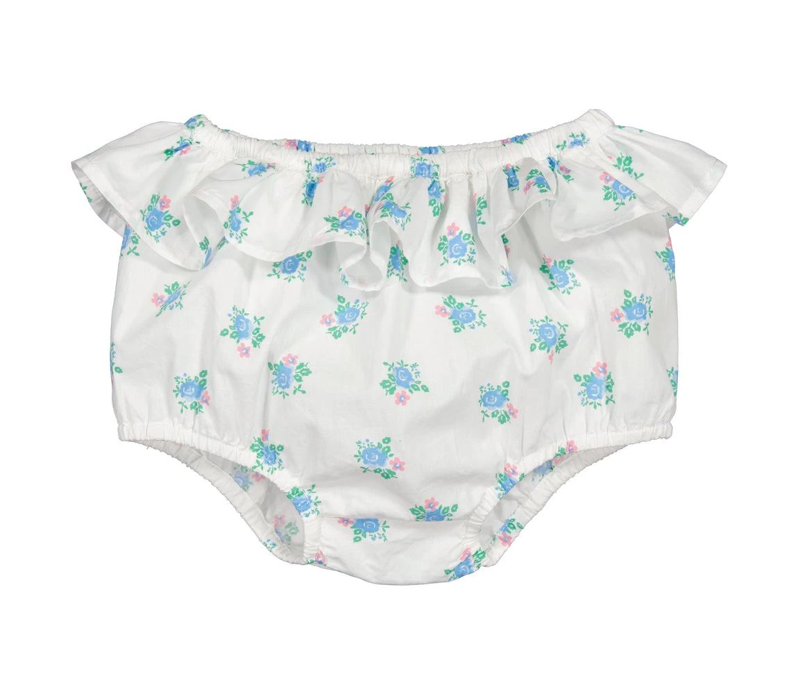 Comfortable bloomers with a nice floral print, a loose fit, ruffles at the top and elastic at the waist. The bloomers are in a light and crispy cotton quality which makes them comfortable to wear.