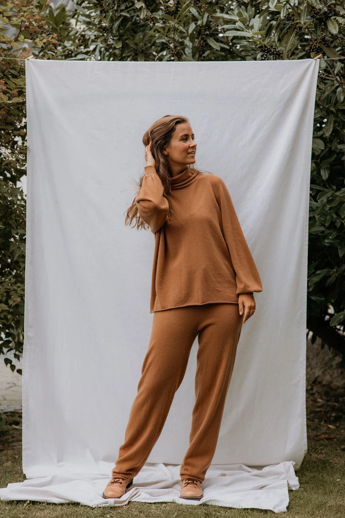 Comfortable and soft cashmere blouse with turtleneck and long sleeves