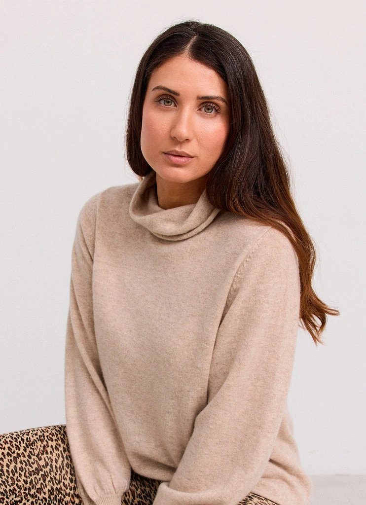 Comfortable and soft cashmere blouse with turtleneck and long sleeves