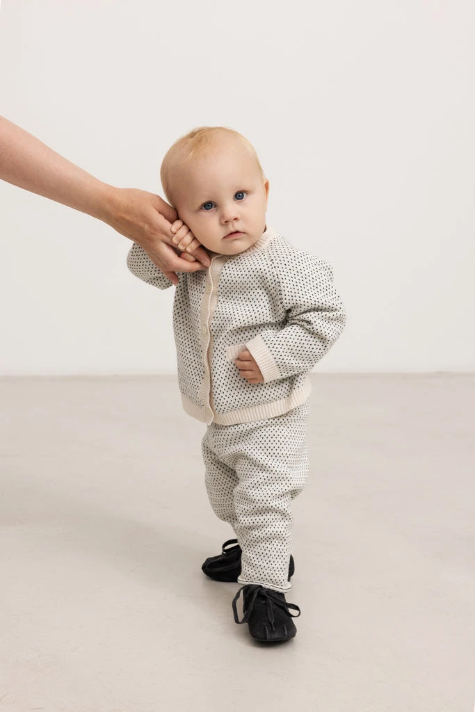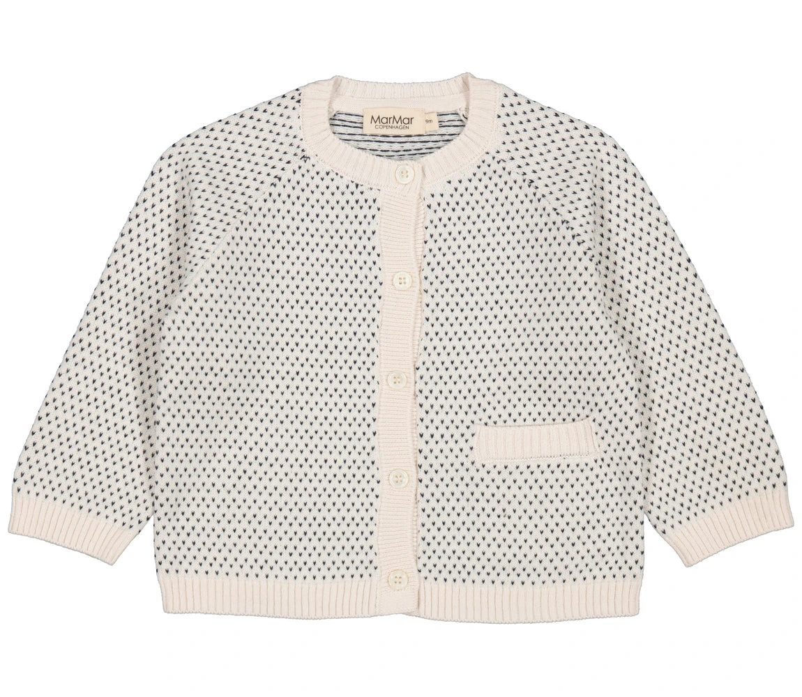 Knit cardigan with raglan sleeves, button closure and small pocket on the front. The cardigan has patterned knit details.