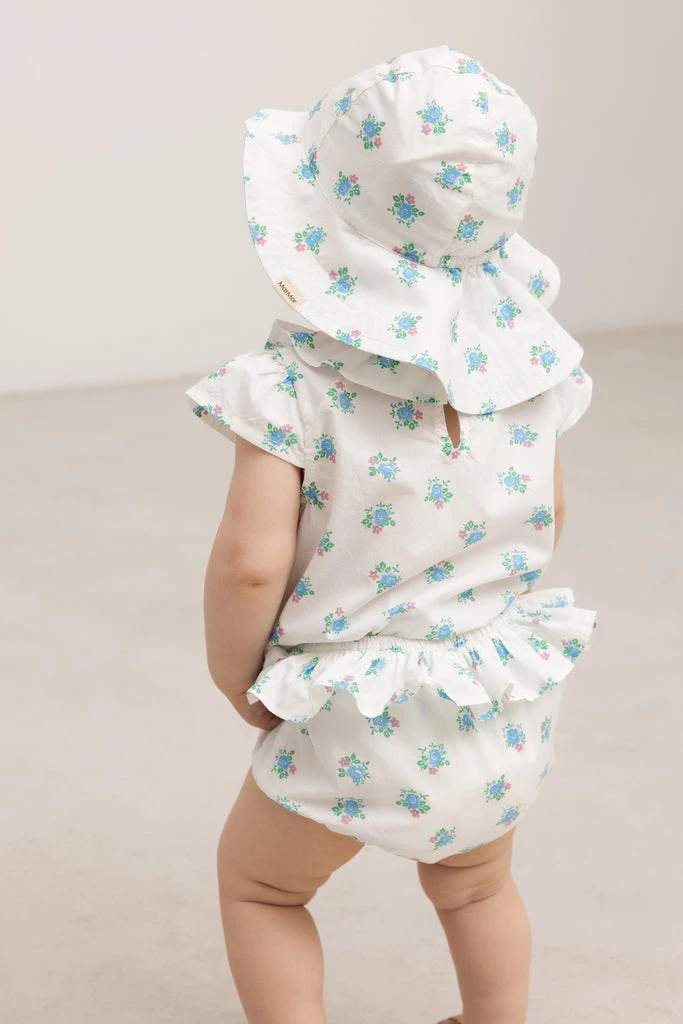 Sleeveless summer top with a cute collar, pretty floral print and button closure at the back. The top is made of a light and crispy cotton quality that makes it comfortable to wear.