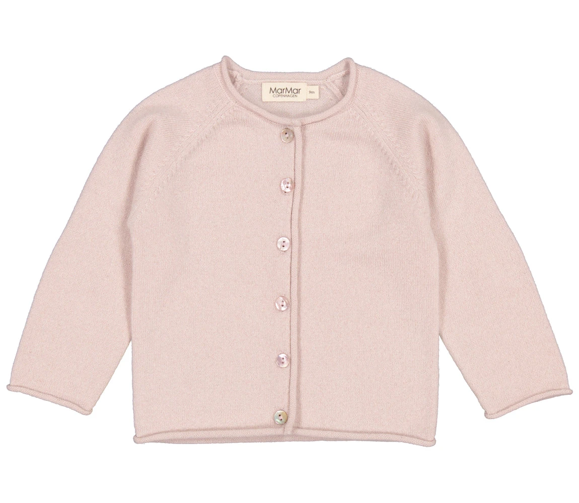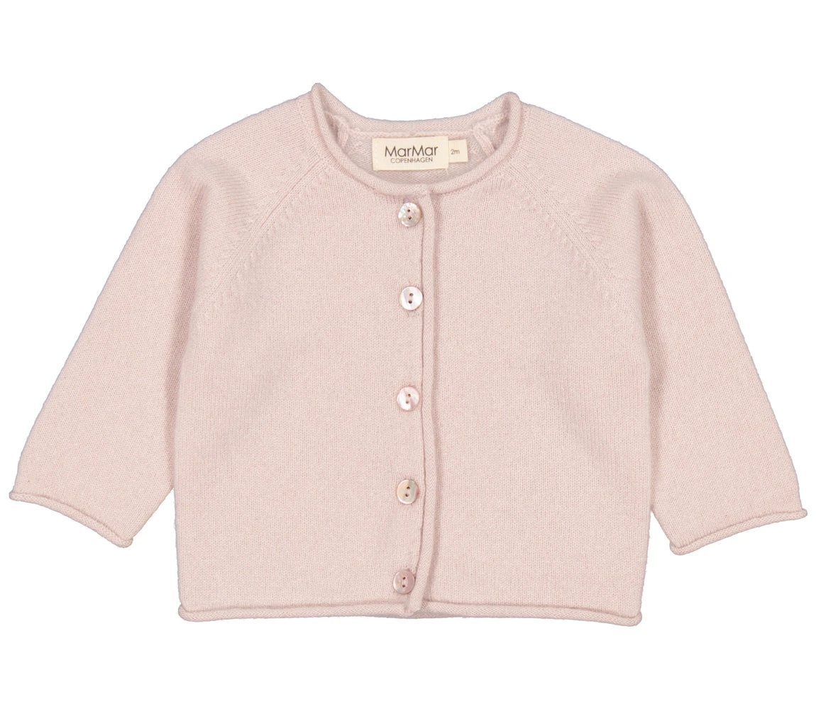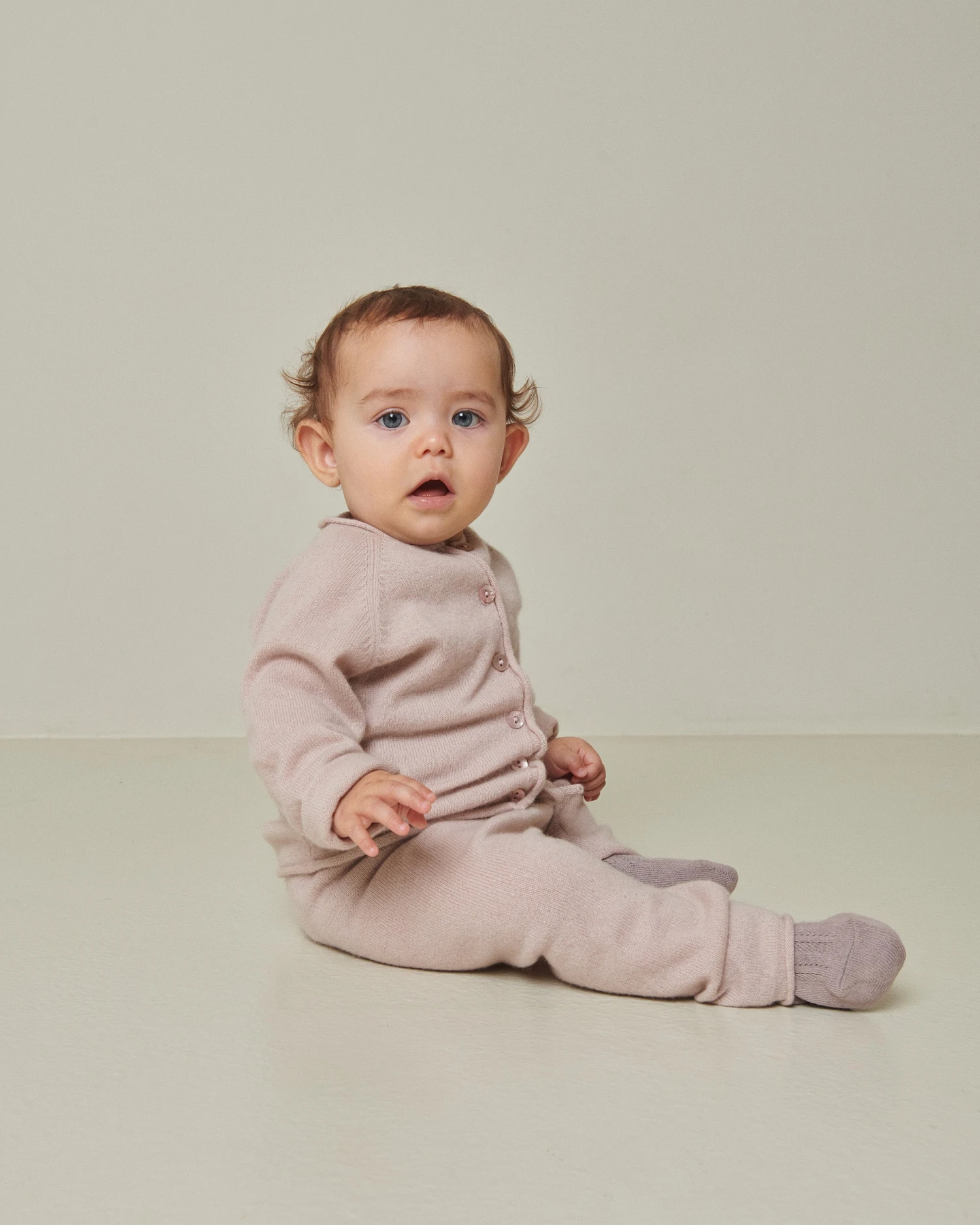Ultra soft cashmere cardigan for baby with button closure, rolled hem and raglan sleeves