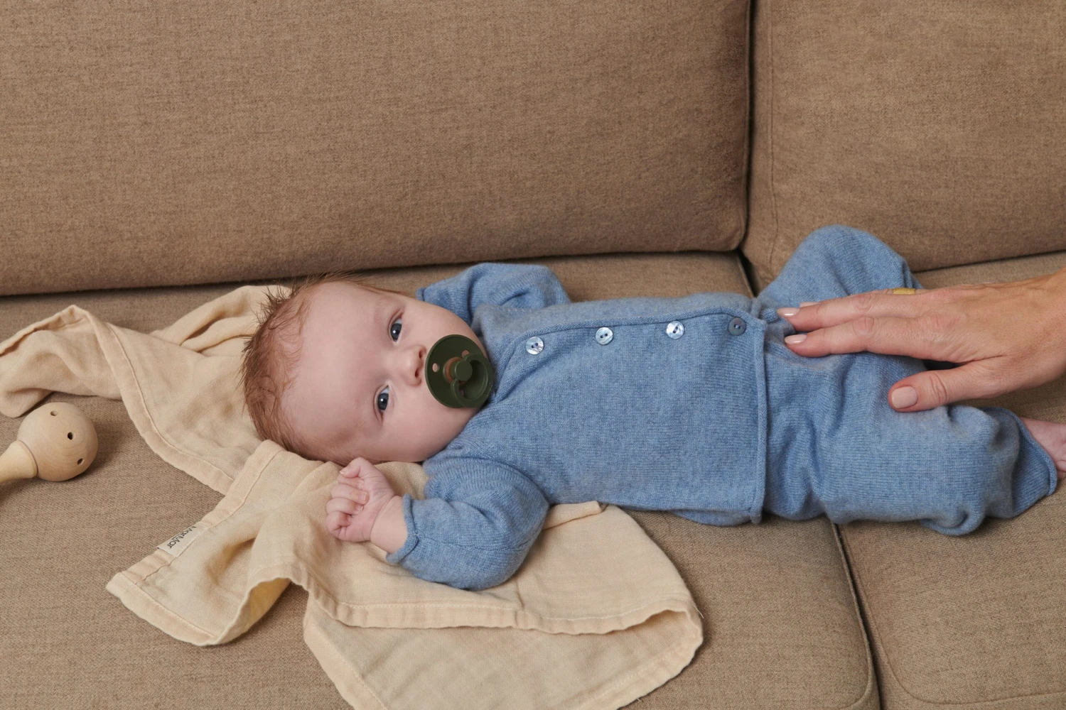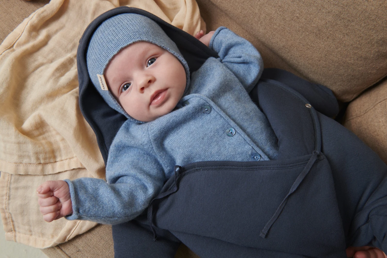 Ultra soft cashmere cardigan for baby with button closure, rolled hem and raglan sleeves