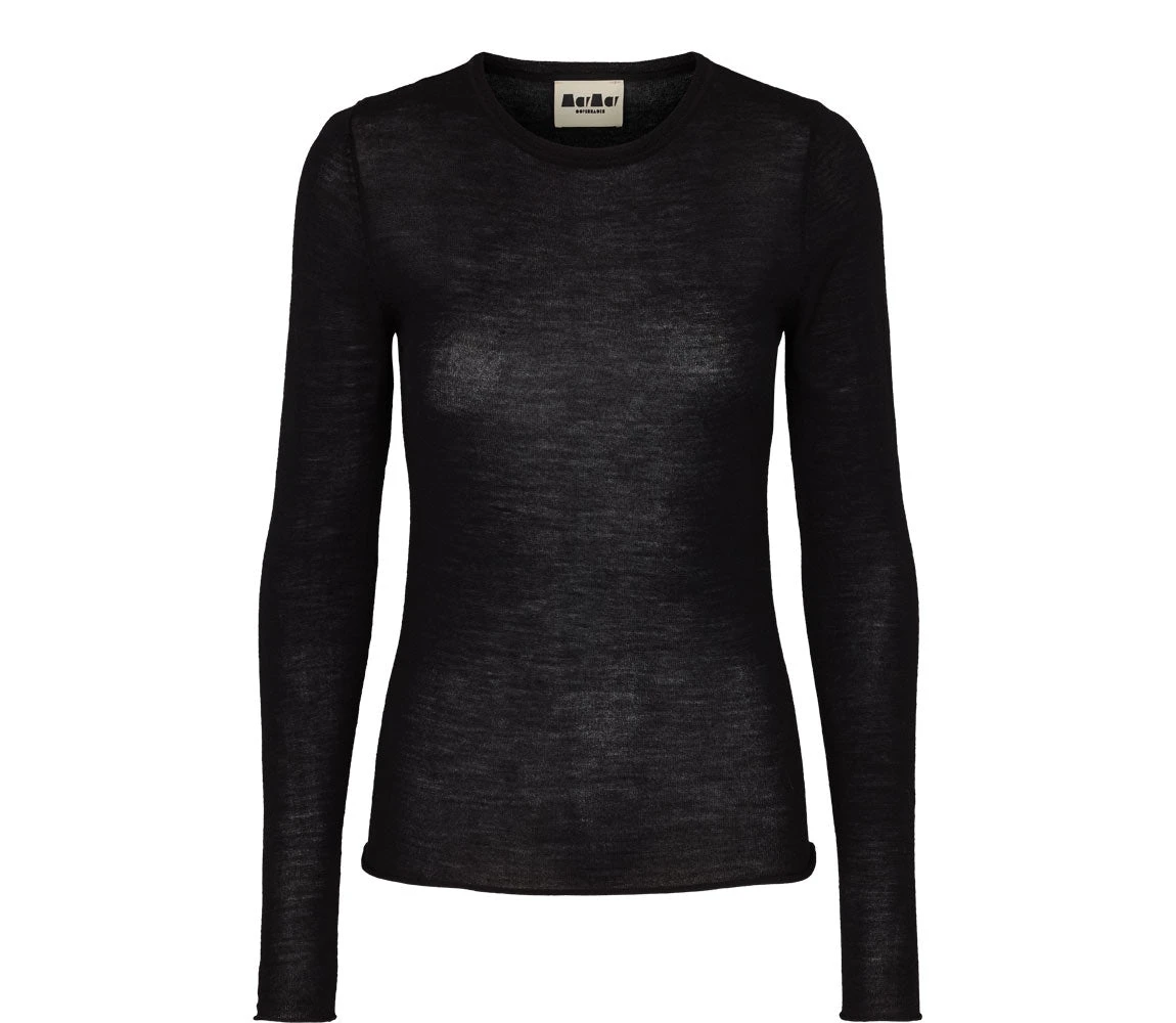 Plain knit blouse with long sleeves and a tight fit. Soft and warm made of 100% merino wool.