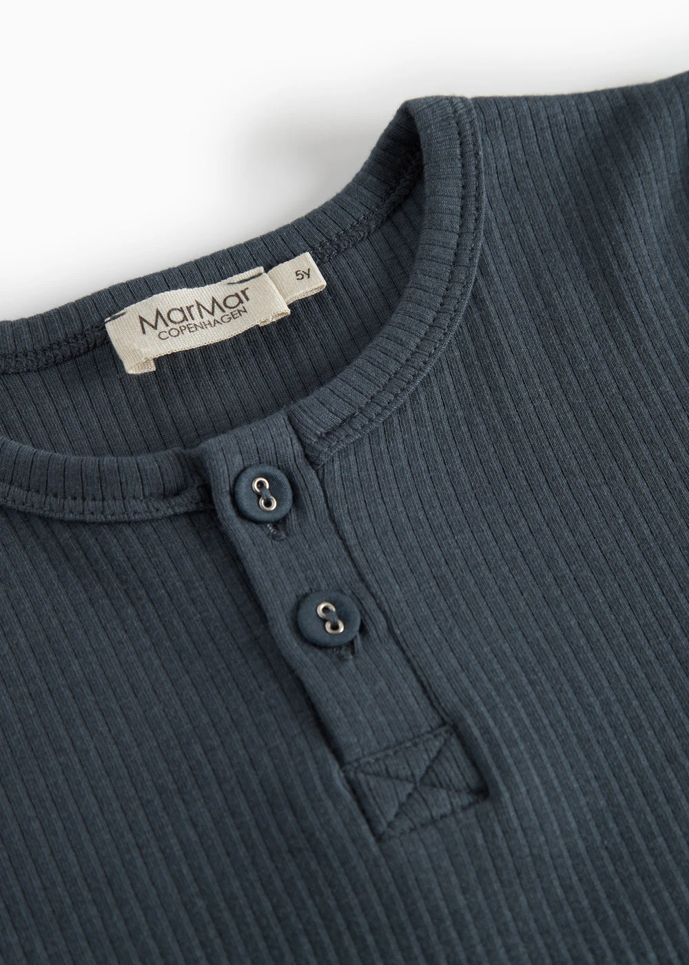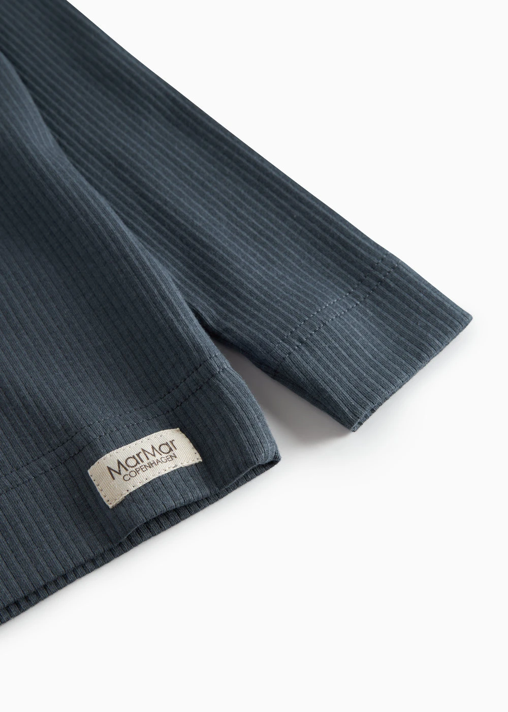 The T-shirt is ribbed, soft, holds its shape and color and has elastane in it, which makes it stretchy and comfortable to wear.