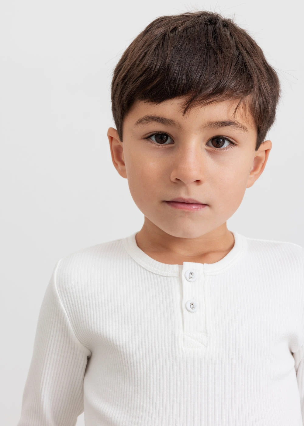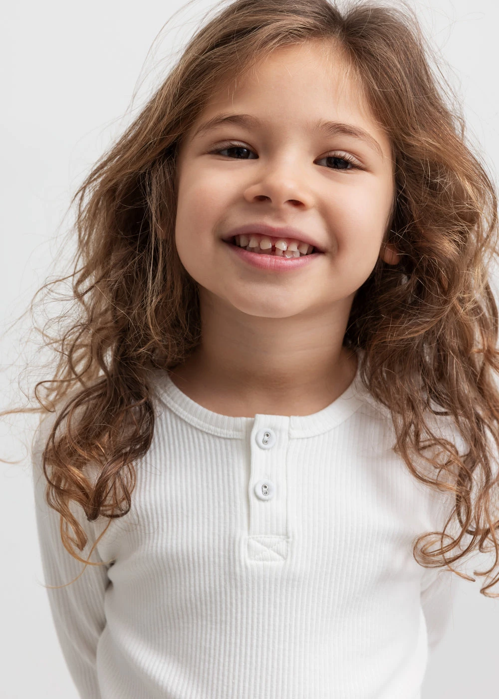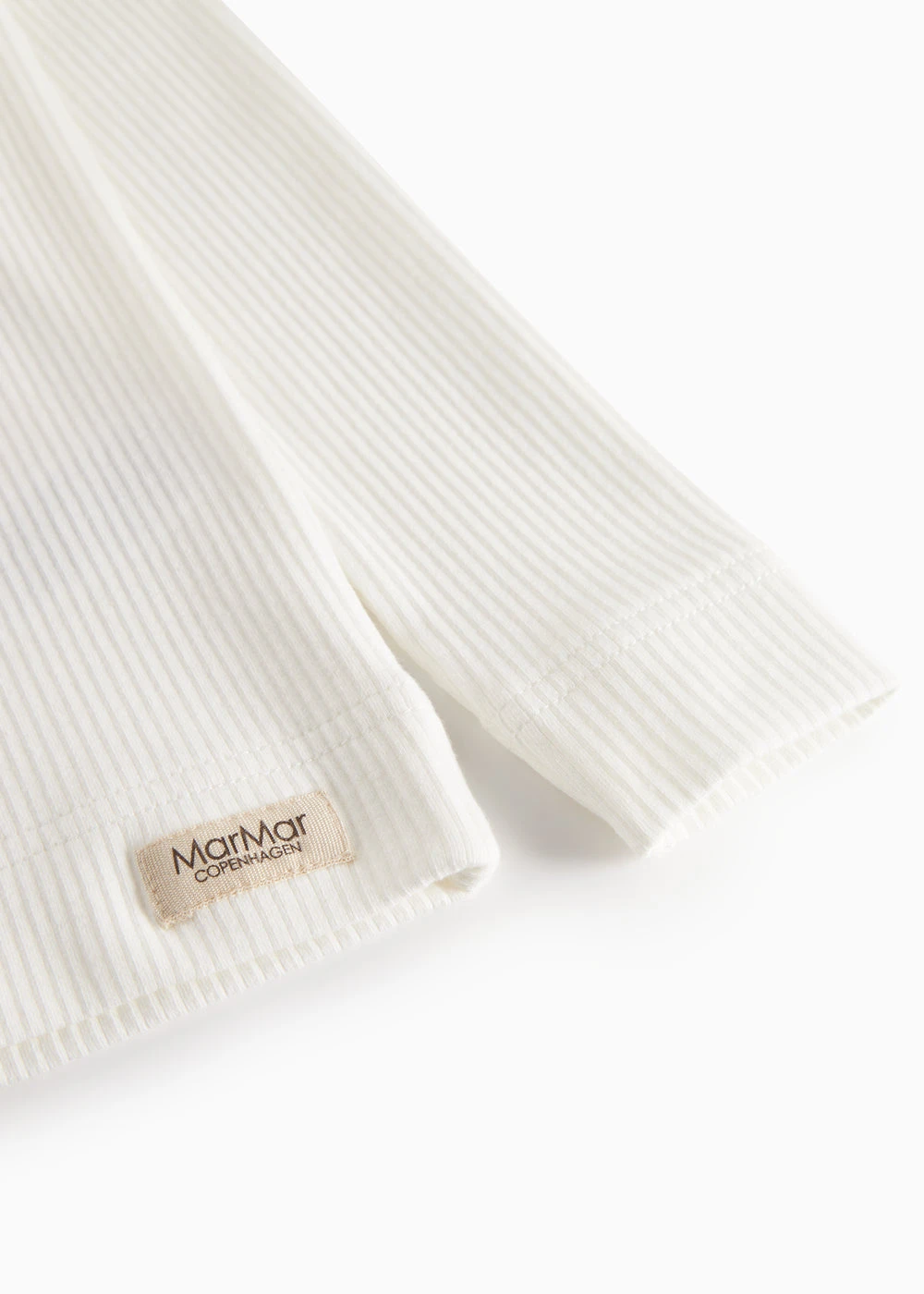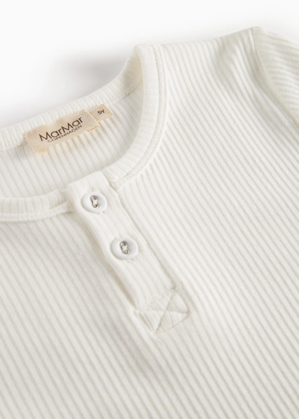 The T-shirt is ribbed, soft, holds its shape and color and has elastane in it, which makes it stretchy and comfortable to wear.