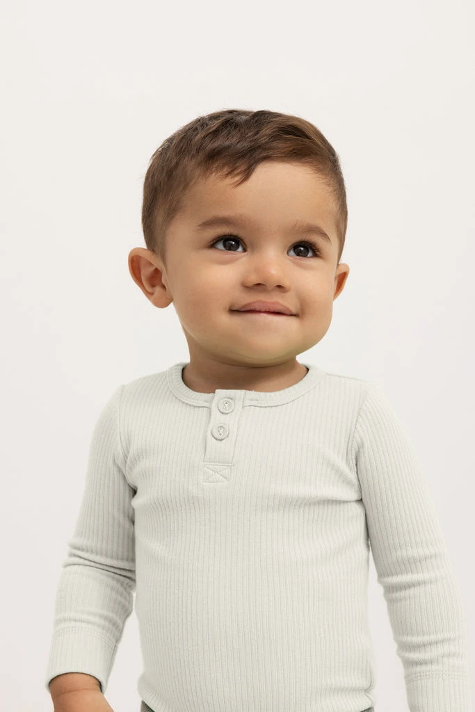 Long-sleeved modal t-shirt for children with placket button closure. The t-shirt is ribbed, soft, holds its shape and color and has elastane in it, which makes it stretchy and comfortable to wear.