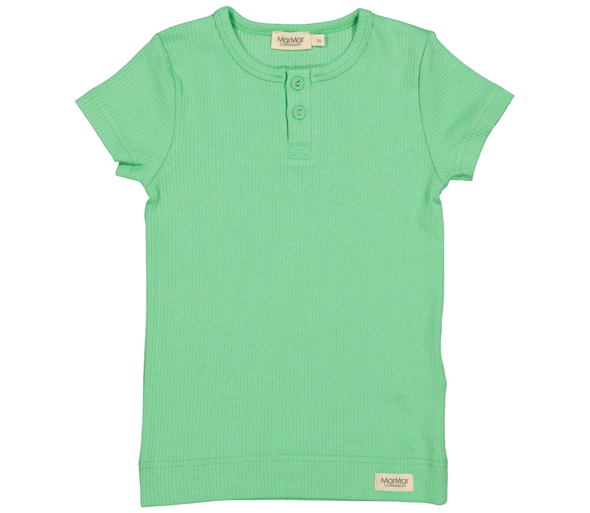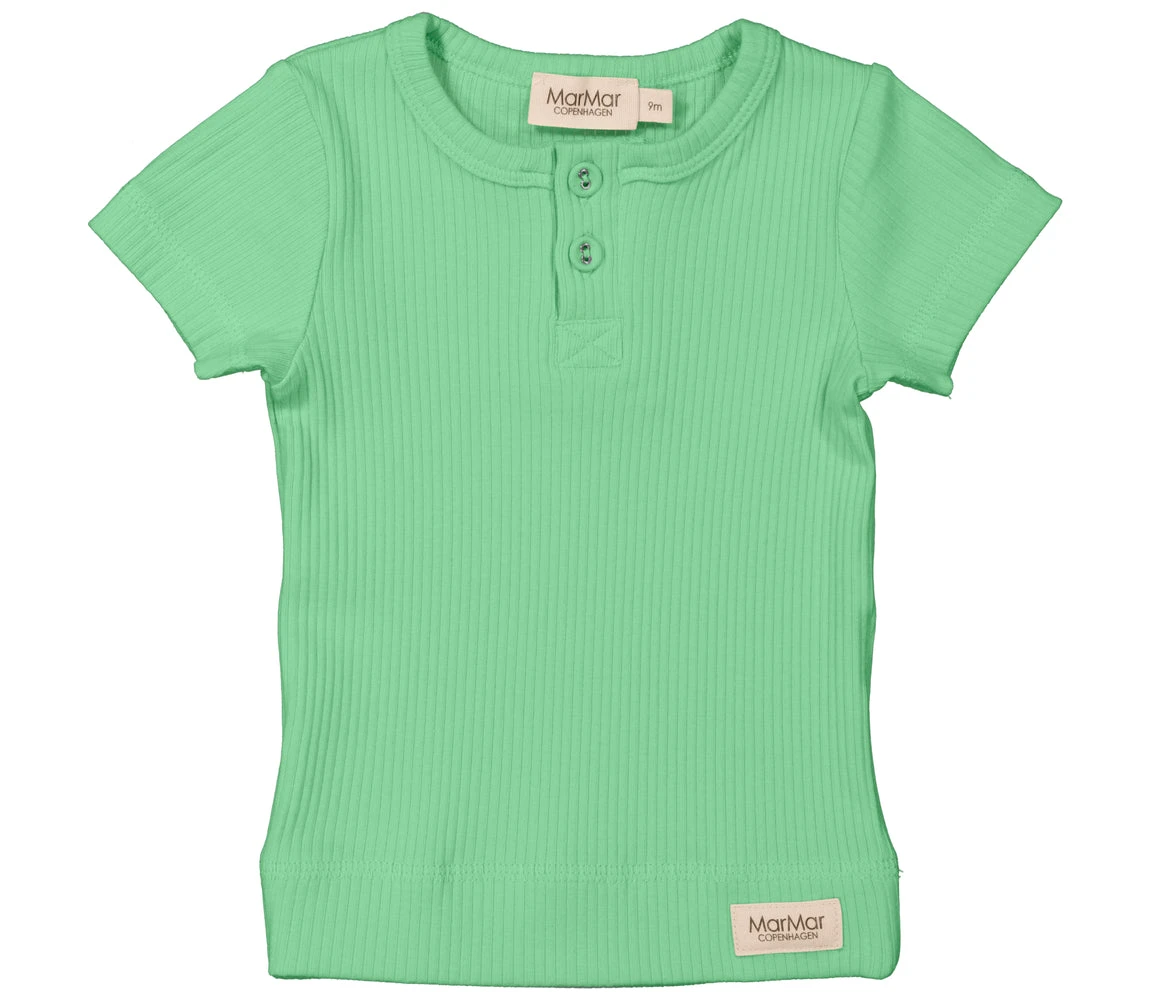 Short-sleeved modal t-shirt for children with placket button closure. The t-shirt is ribbed, soft, holds its shape and color and has elastane in it, which makes it stretchy and comfortable to wear.