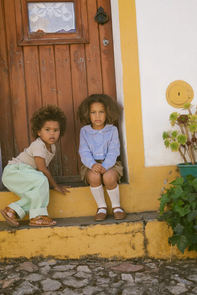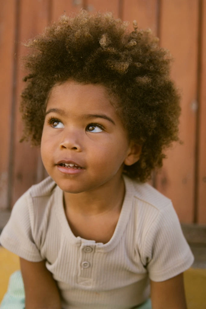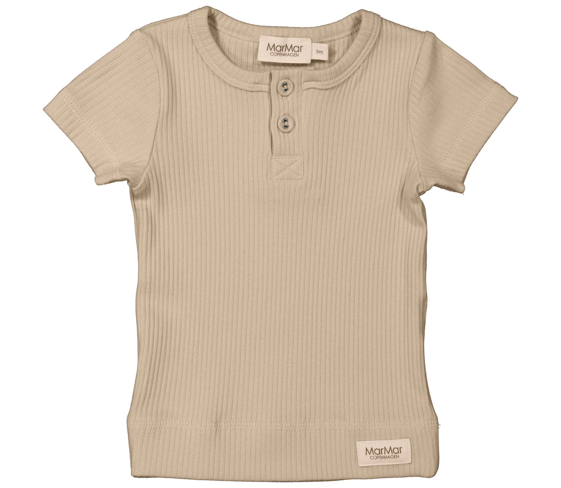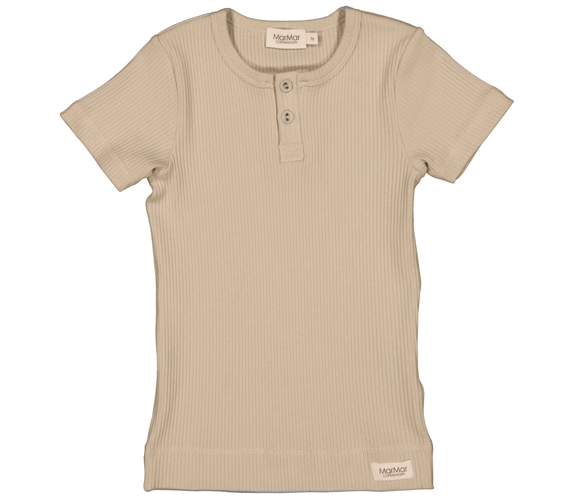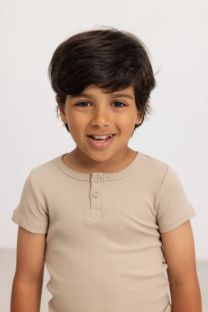 Short-sleeved modal t-shirt for children with placket button closure. The t-shirt is ribbed, soft, holds its shape and color and has elastane in it, which makes it stretchy and comfortable to wear.