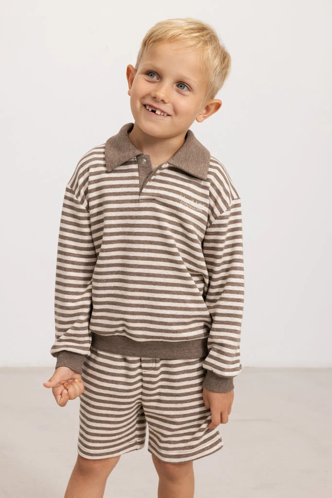 SKU: BWFYB 14797881573700 Category: Sweats Tags: 251-158-31, Boy, Color:Brown, Kids, Kids Boy, Material:Certified Organic Cotton & TENCELβ’ Modal, Modal Sweat, NEWS-SUMMER-25, Overdel, Print:Stripes, SALE-SUMMER-25, SAPG::158_Thanos Polo::Brown stripe Mel., Shirts/Tops, Size:baby-kids-tween, SS25, SS25-DROP-4