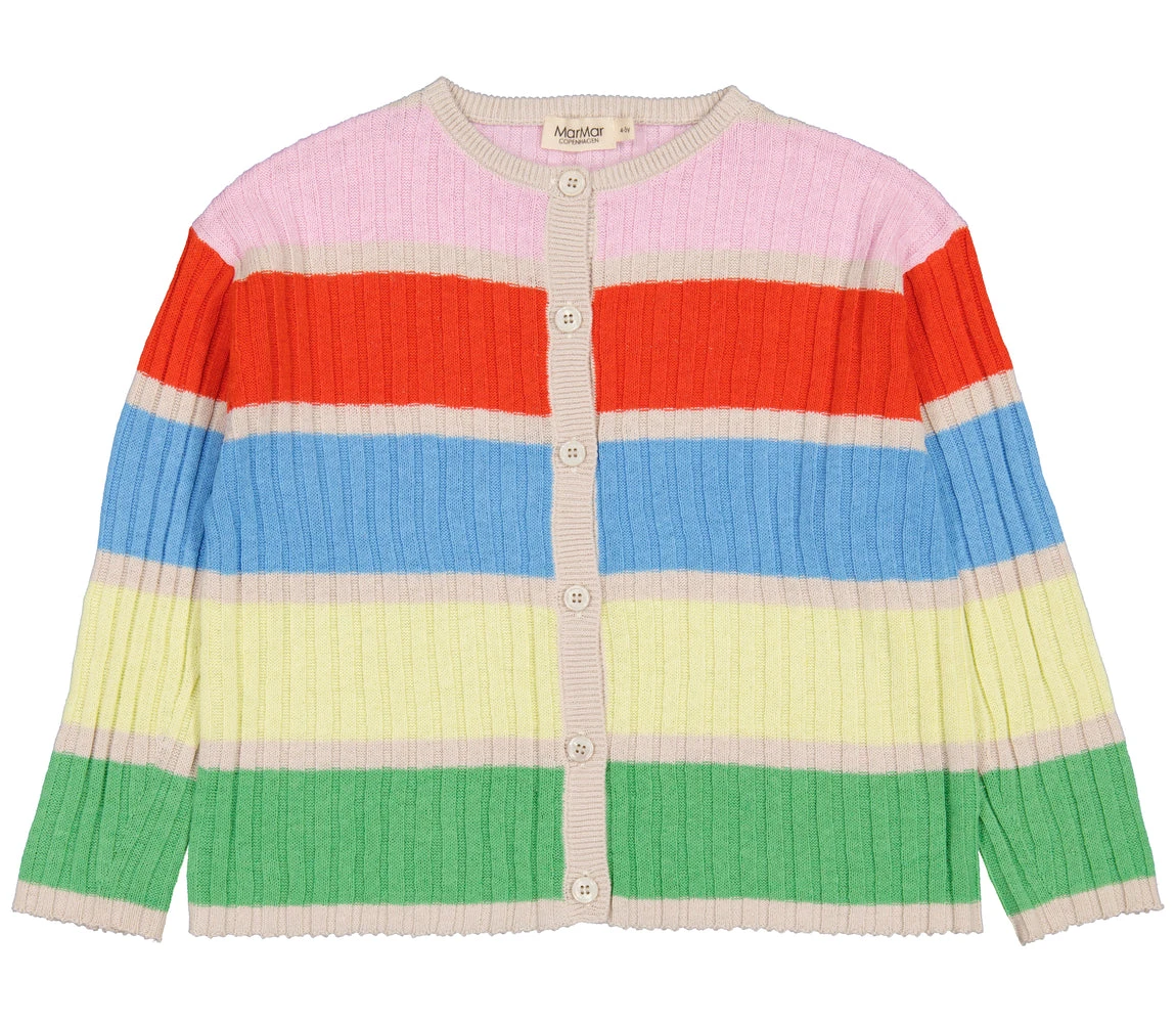 Long-sleeved cardigan with beautiful rainbow colors and button closure at the front. The cardigan is in a delicious linen and cotton blend.
