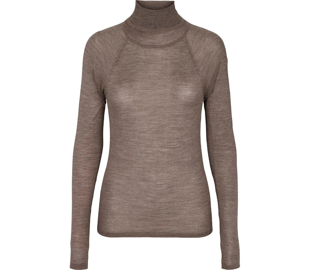 Plain knit blouse with a turtleneck, long sleeves and a tight fit. Soft and warm made of 100% merino wool.