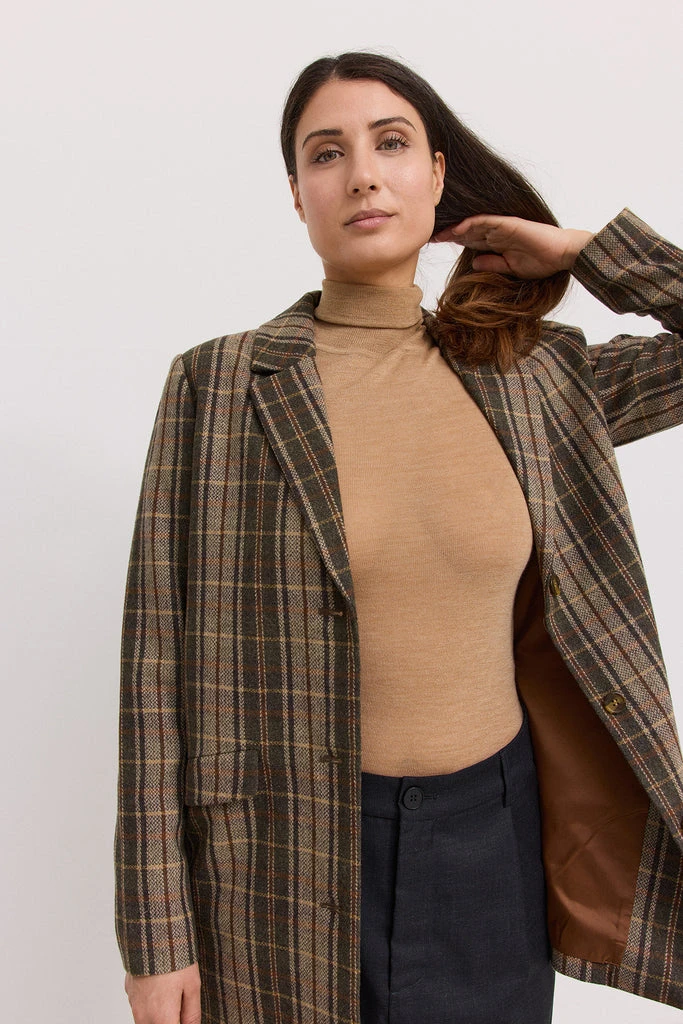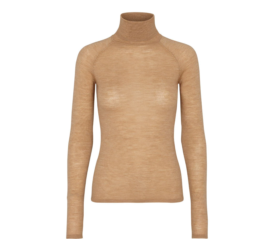 Plain knit blouse with a turtleneck, long sleeves and a tight fit. Soft and warm made of 100% merino wool.
