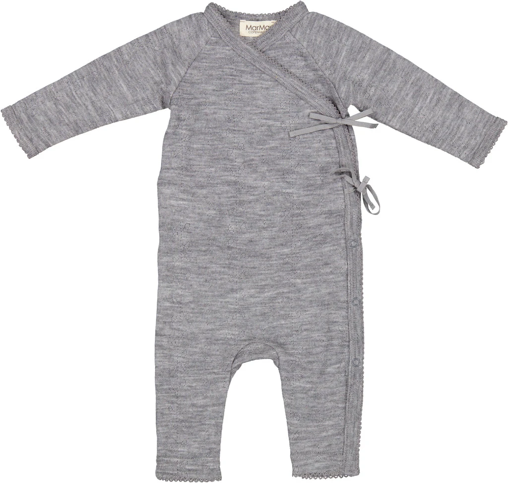 Turtleneck, Wool Pointelle Jumpsuit – Grey Melange
