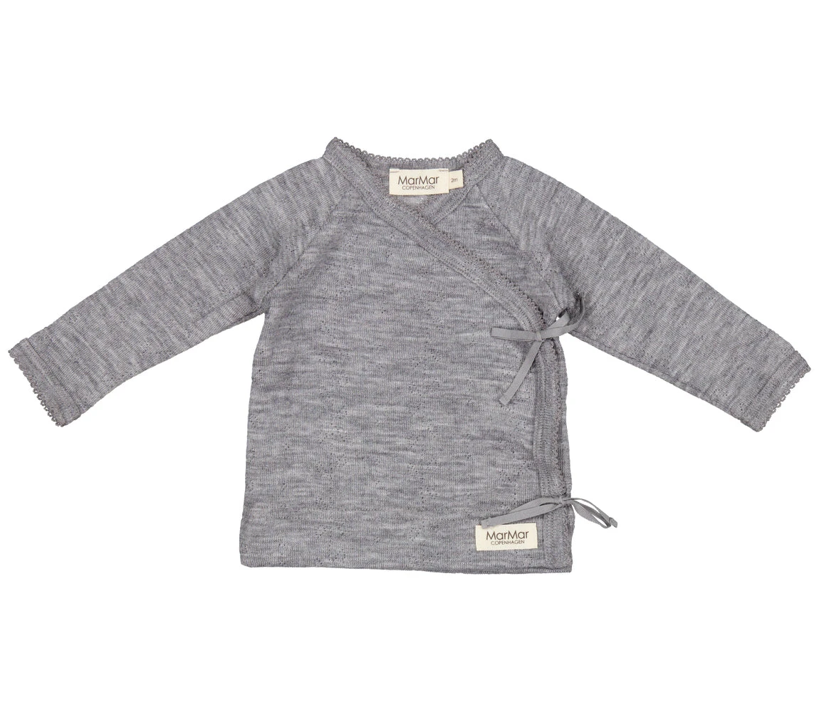 Tut Wrap LS, Wool Pointelle Blouse – Grey Melange